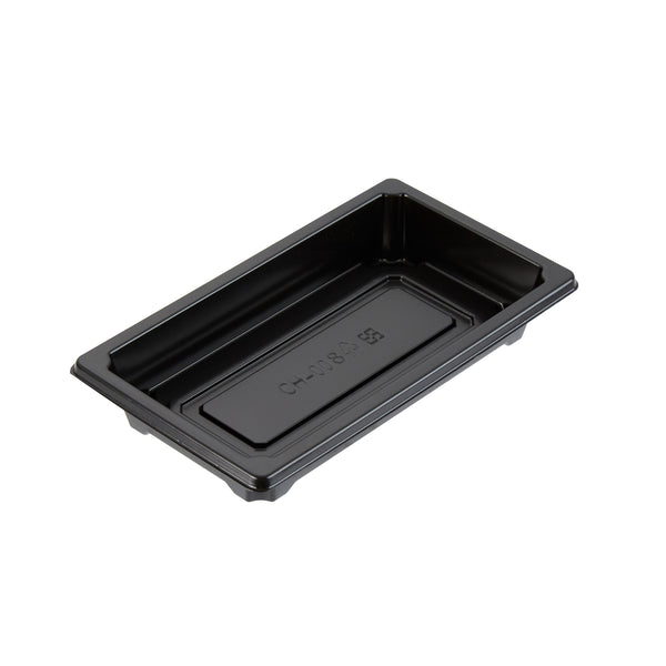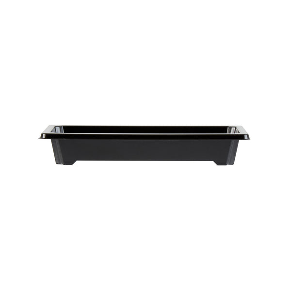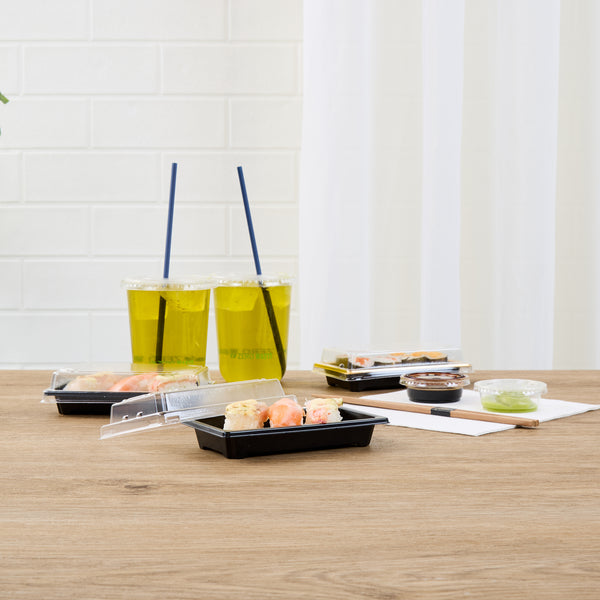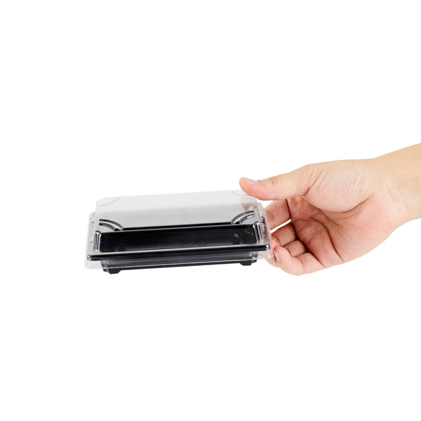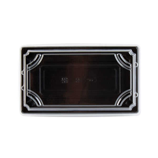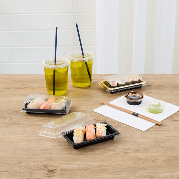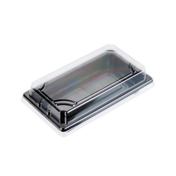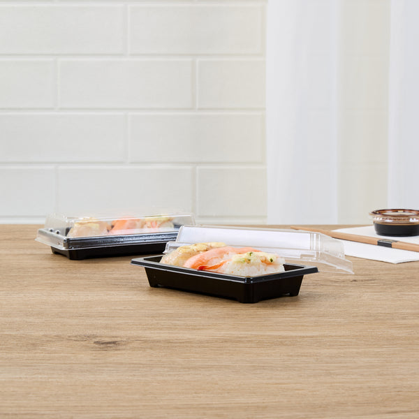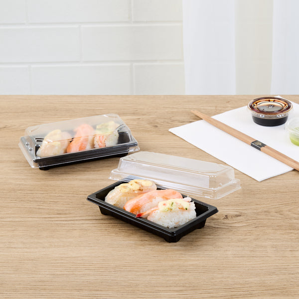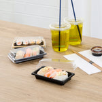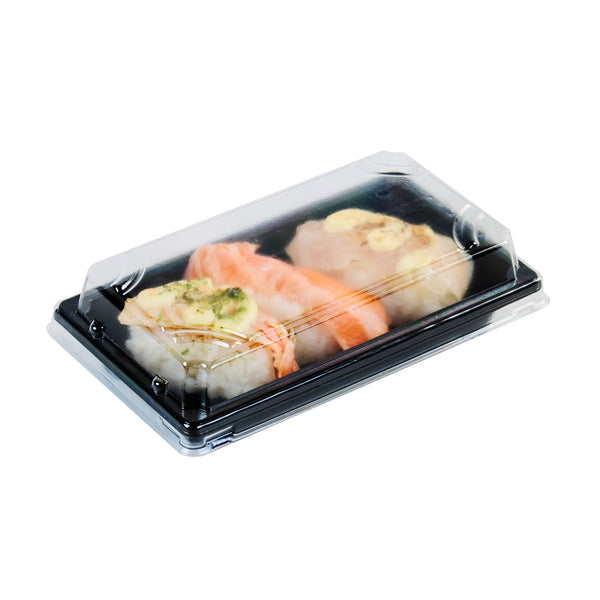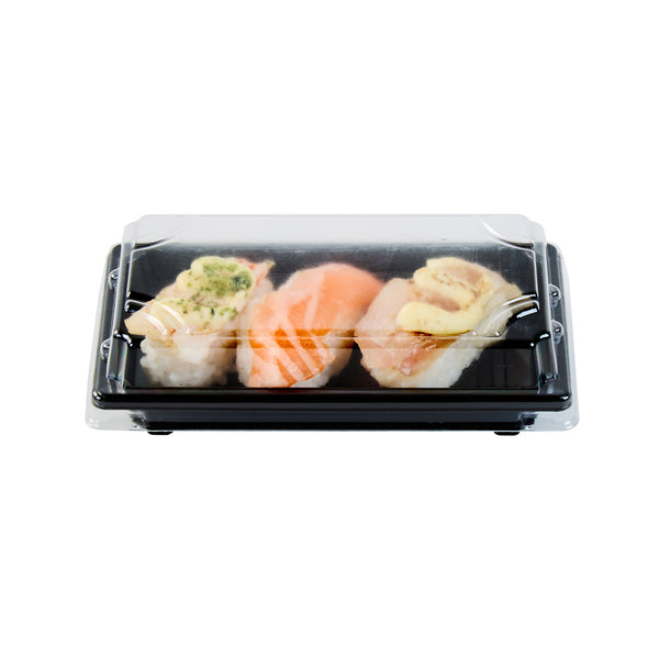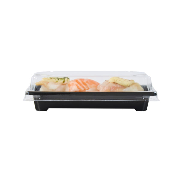 RECTANGLE BLACK PLASTIC TAKE OUT SUSHI TRAY - WITH CLEAR LID
