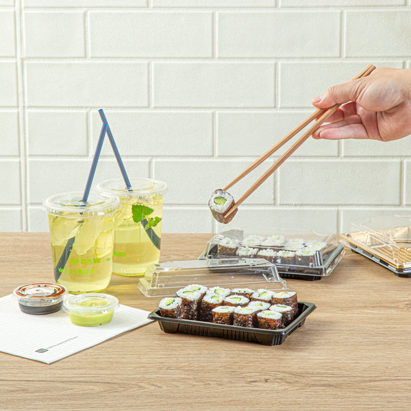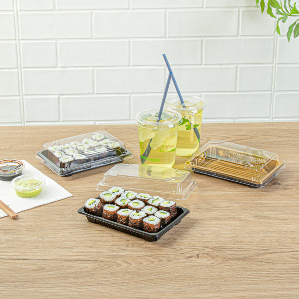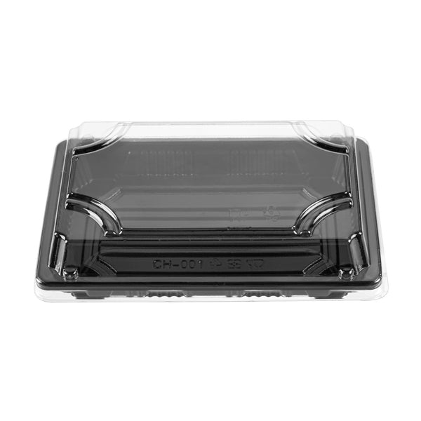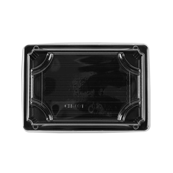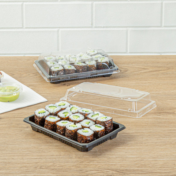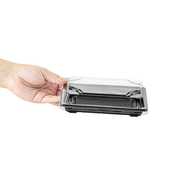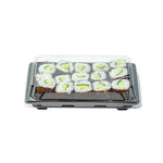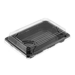 RECTANGLE BLACK PLASTIC TAKE OUT SUSHI TRAY - WITH CLEAR LID