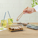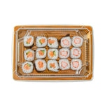 - Snap-on lids keep sushi fresh for takeout