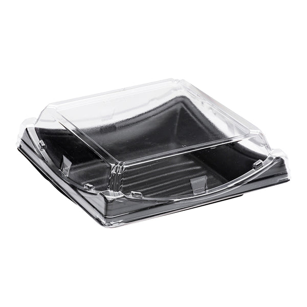 SQUARE BLACK PLASTIC TAKE OUT SUSHI CONTAINER - WITH CLEAR LID