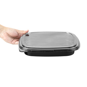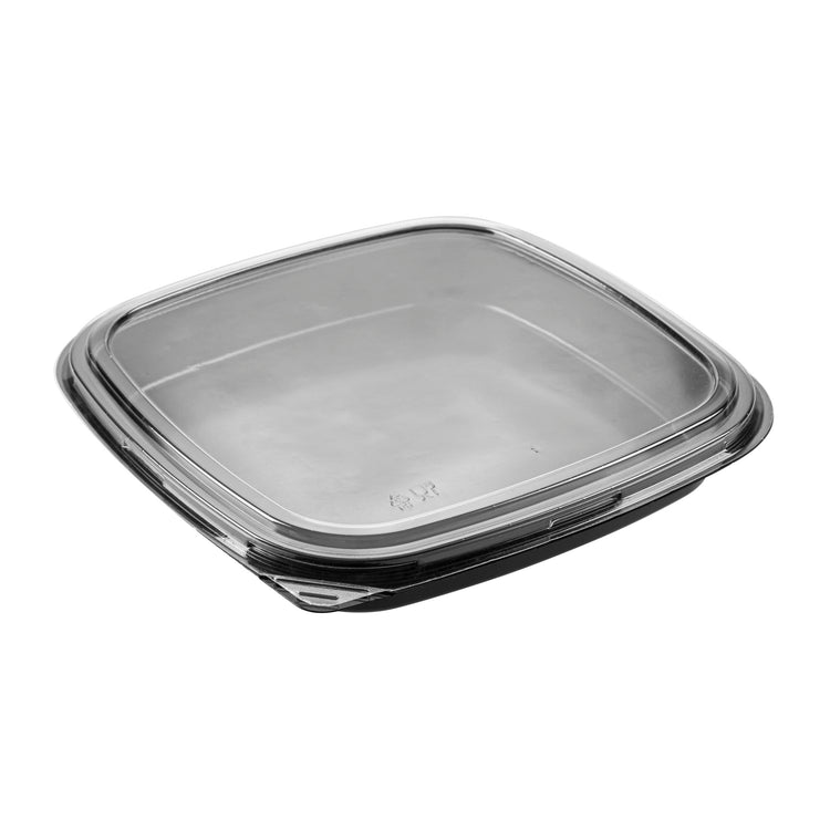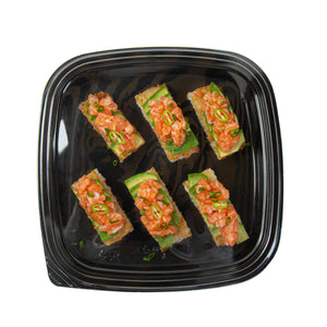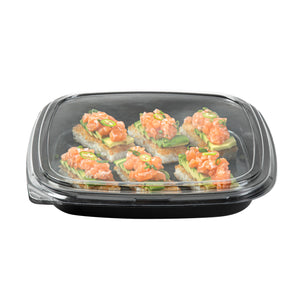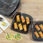 SQUARE BLACK PLASTIC TAKE OUT SUSHI TRAY - WITH CLEAR LID
