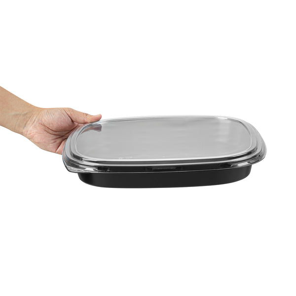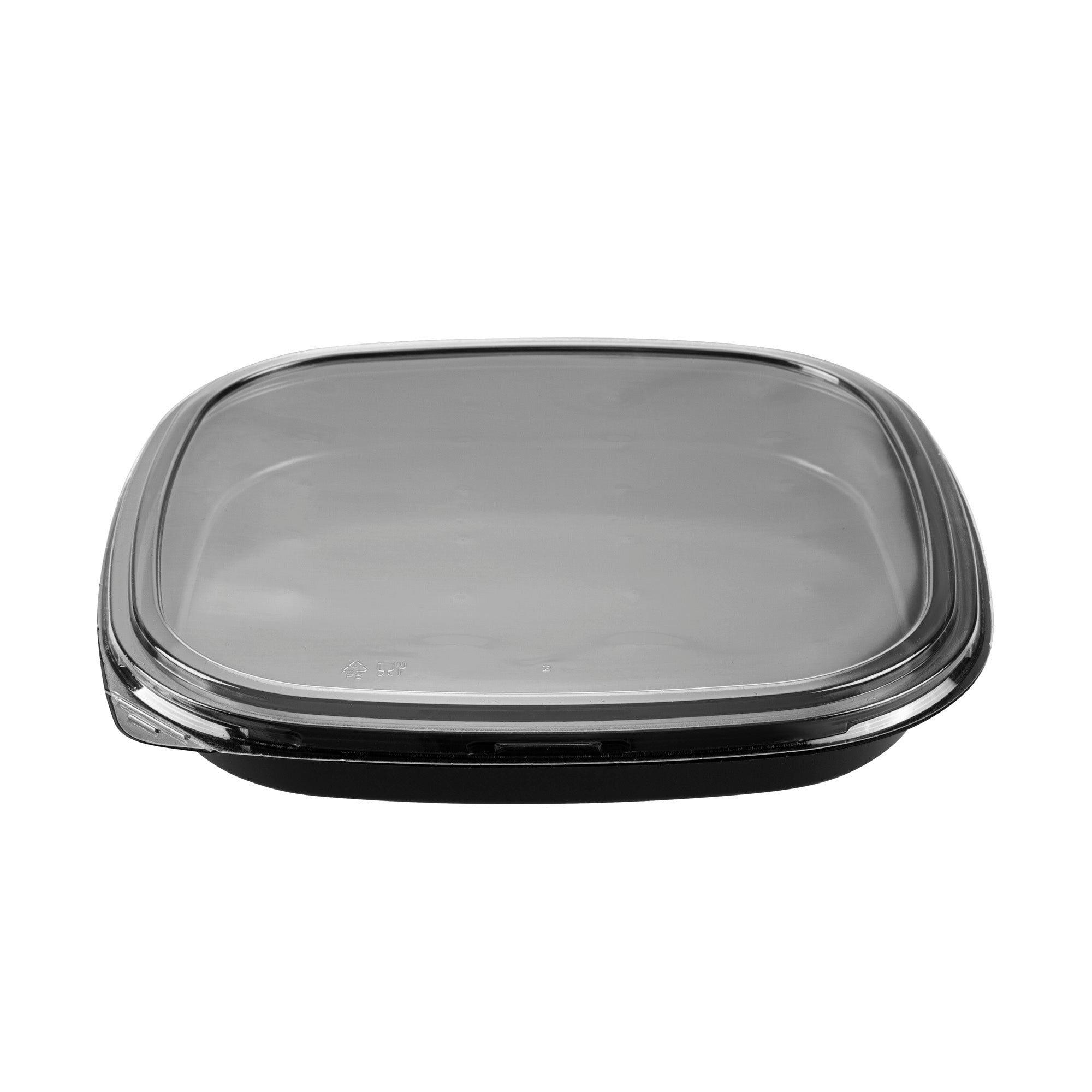 SQUARE BLACK PLASTIC TAKE OUT SUSHI TRAY - WITH CLEAR LID
