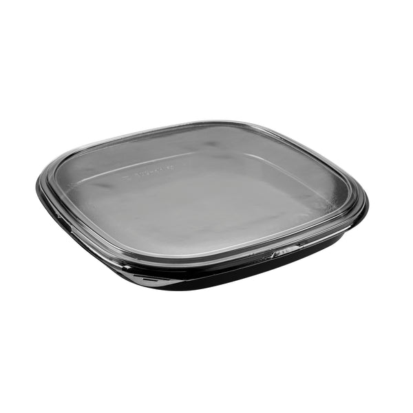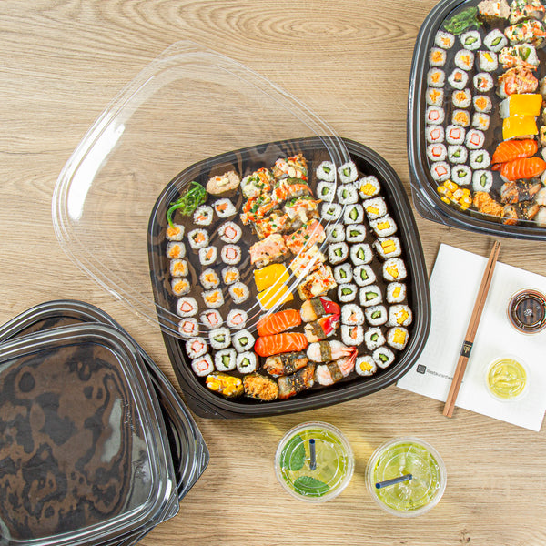 SQUARE BLACK PLASTIC TAKE OUT SUSHI TRAY - WITH CLEAR LID