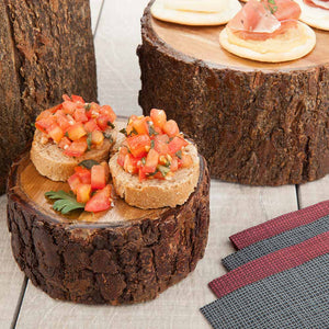 - Natural bark surface bring rustic flair to tablescapes and place settings