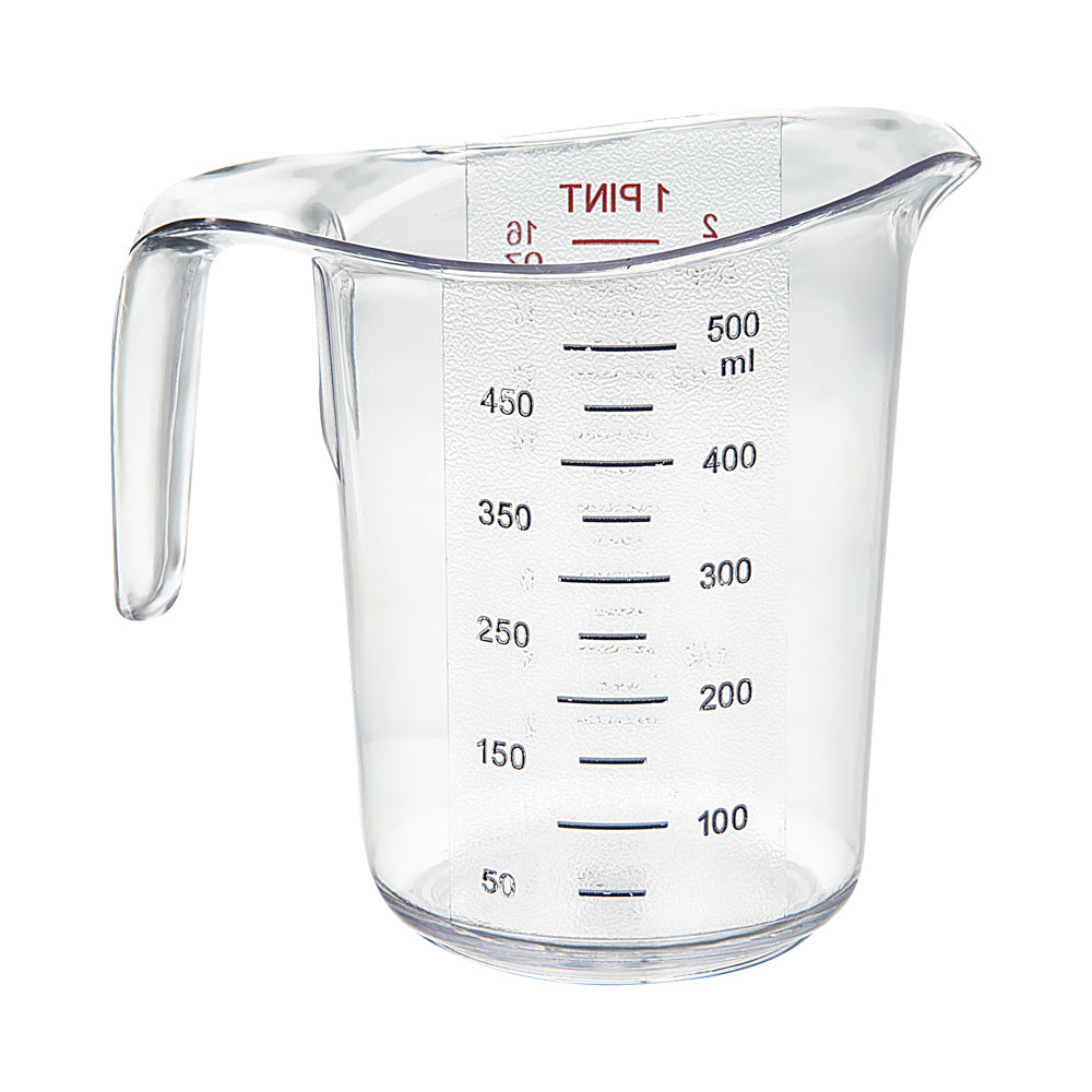 These plastic measuring jars have both metric and imperial units embossed on them for precise measurement. Double the benefits.