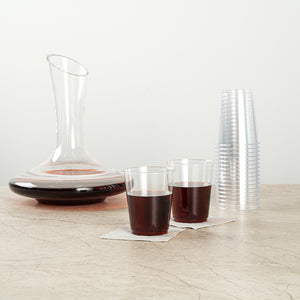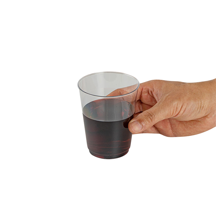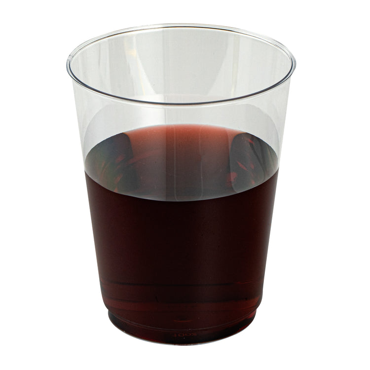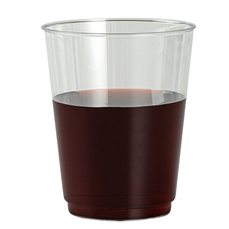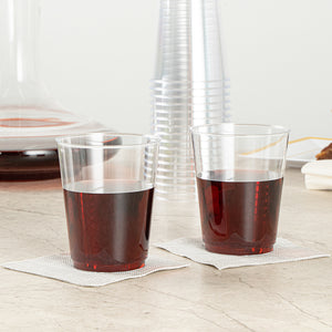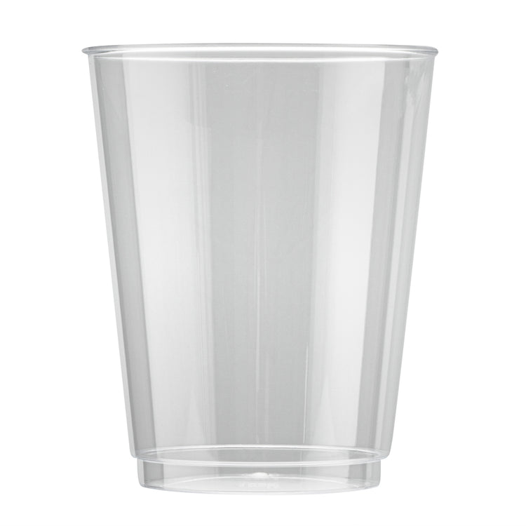 The durable PS plastic construction of these clear plastic disposable cups provides a sturdy drinking experience without any worry of breakage. Manufactured with rolled rims for additional strength.
