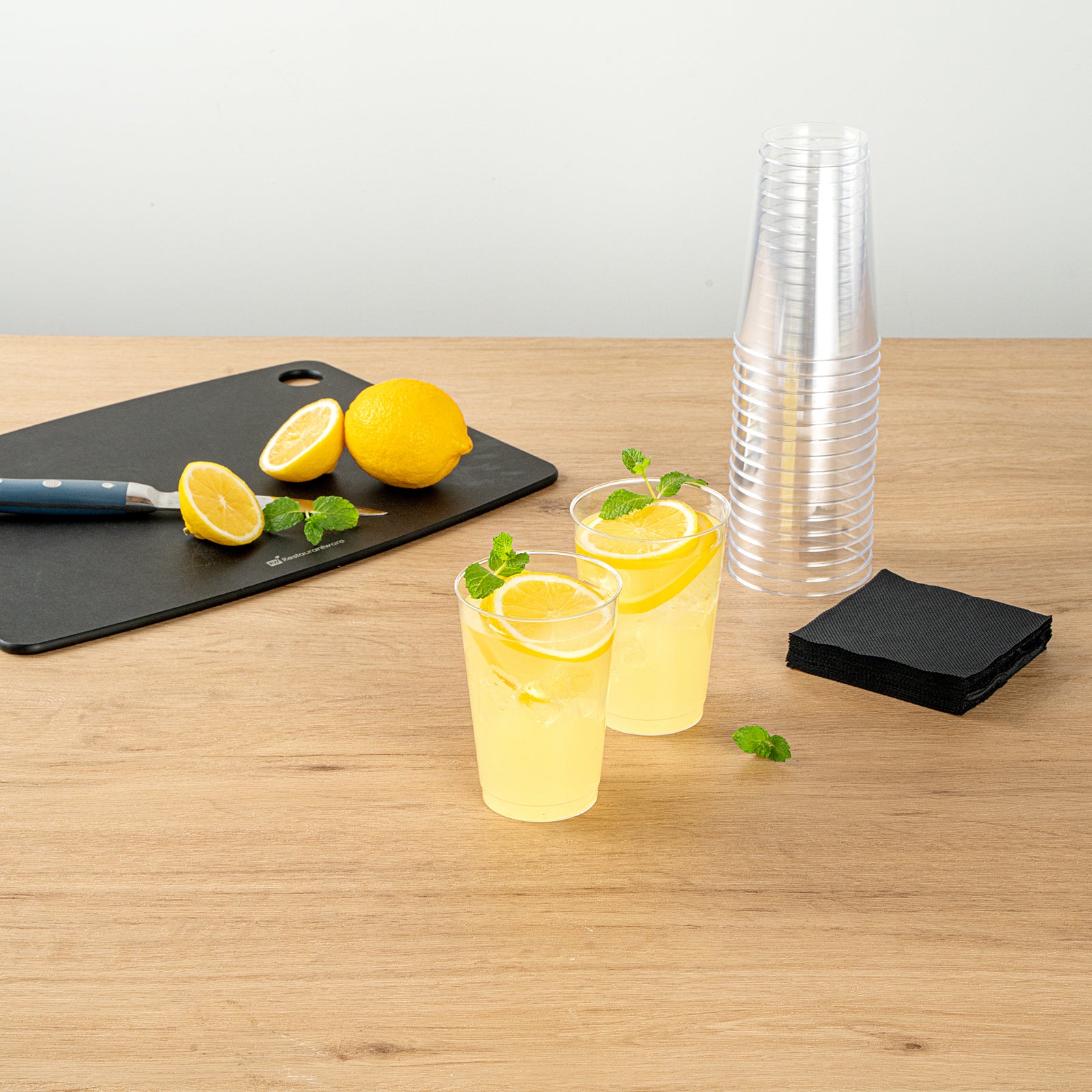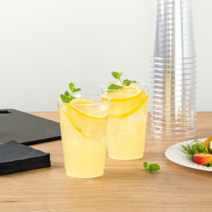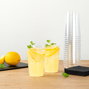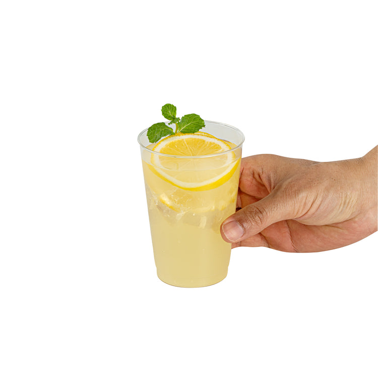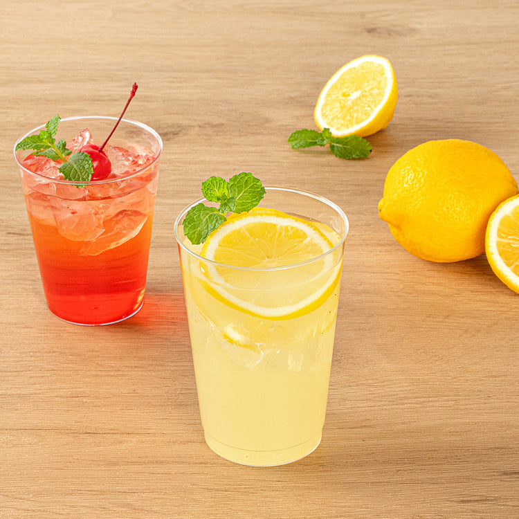 The durable PS plastic construction of these clear plastic disposable cups provides a sturdy drinking experience without any worry of breakage. Manufactured with rolled rims for additional strength.