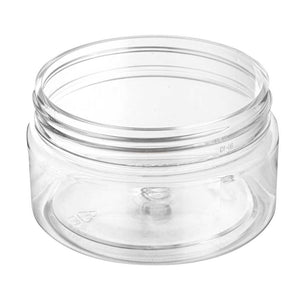 4 OZ ROUND CLEAR PLASTIC CANDY AND SNACK JAR - WITH BLACK ALUMINUM LID