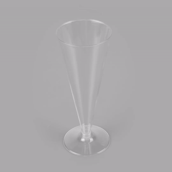 Spice up your party by serving cocktails using our 7-ounce Clear Plastic Long Champagne Flutes. These drinking glasses are crafted from high-quality plastic, making them shatterproof for longevity. The sleek cone shape and wide rim of these party cups make them visually appealing and offer a comfortable drinking experience. These clear champagne glasses have a removable base that stands upright on counters and can be detached, if needed, for space-saving storage. Holding up to 7 ounces, these plastic champagne flutes ensure that you enjoy your favorite sparkling beverages without constant refilling, allowing you to focus on celebrating the moment. These plastic wine glasses have an elegant clear finish to expertly highlight the color and hues of your, allowing you to fully appreciate the drink's texture, clarity, and effervescence, adding to the pleasure of each sip by making it a multisensory experience. These plastic wine glasses can be disposed of after use to speed up the cleaning process, making them ideal for restaurants, special occasions, weddings, or parties. Each plastic cocktail glass measures 2.75 inches in diameter by 6.75 inches in height and has a capacity of 7 ounces. Sold in a 100 count box.