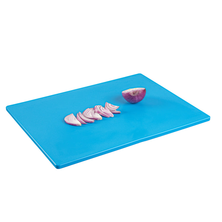These color-coded cutting boards establish a system of assigning red to raw meats, green to fruits and vegetables, and yellow to poultry significantly increases cleanliness and enables the kitchen staff to quickly identify and use the correct board for each food type. These cutting boards come in different colors to comply with the HACCP standards.