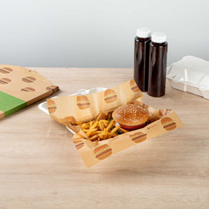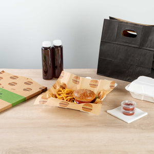 Enhance your food presentation with eco-friendly solutions. Chef 101 No PFAS Added Kraft Paper Food Wrap and Fry Basket Liner offers a sustainable alternative with its 12-inch by 12-inch no PFAS added paper, supporting eco-friendly initiatives in your kitchen. Designed to maintain the presentation of oily foods, this greaseproof paper ensures that sauces and oils stay contained, making it ideal as burger wrap paper for busy foodservice establishments. A unique print adds sophistication and style, elevating your food presentation to new heights. Crafted from kraft paper, these food wrap sheets are both cold and hot food friendly, providing versatility for various culinary applications. This recyclable material not only supports environmental goals but also enhances operational efficiency by reducing clean-up time. Choose this greaseproof paper to combine functionality with sustainability in your restaurant or catering business. Sold in a 200 count box.