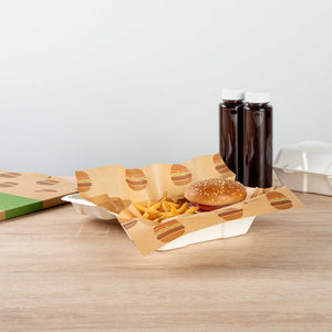 Enhance your food presentation with eco-friendly solutions. Chef 101 No PFAS Added Kraft Paper Food Wrap and Fry Basket Liner offers a sustainable alternative with its 12-inch by 12-inch no PFAS added paper, supporting eco-friendly initiatives in your kitchen. Designed to maintain the presentation of oily foods, this greaseproof paper ensures that sauces and oils stay contained, making it ideal as burger wrap paper for busy foodservice establishments. A unique print adds sophistication and style, elevating your food presentation to new heights. Crafted from kraft paper, these food wrap sheets are both cold and hot food friendly, providing versatility for various culinary applications. This recyclable material not only supports environmental goals but also enhances operational efficiency by reducing clean-up time. Choose this greaseproof paper to combine functionality with sustainability in your restaurant or catering business. Sold in a 2000 count box.