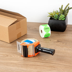 Refine your packing routine with our Handy Tek Orange Heavy-Duty Tape Dispenser Guns. Equip yourself with a durable rubber handle and an intuitively designed pistol grip. These iron tape dispensers assure a consistent hold, mitigating the strain during consistent use. Equipped with a 3-inch maximum tape width capability, a loading mechanism, and a smoothing roller, these packaging tape dispensers streamline your package sealing endeavors, promising a smooth and accurate cut every single time. Personalize your packaging approach with the customizable tension knob on these tape guns, allowing all-encompassing control over your seal tautness. Sporting convenient dimensions of 10.2 inches in length by 3.5 inches in width by 4.1 inches in height, these dynamic orange handheld tape dispensers deliver efficient storage without compromising on style. Sold in a 10 count box.