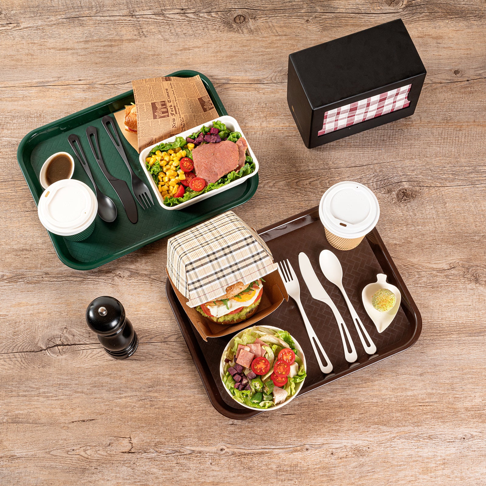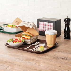 The wide surface of these fast food trays provides ample space, allowing customers to conveniently carry multiple items such as drinks, burgers, fries, and condiments all at once. Make it easy for customers to enjoy their meals.