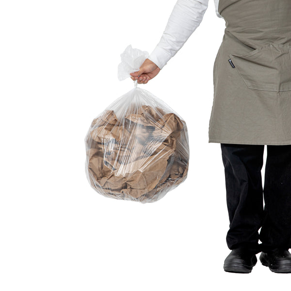 Ensure cleaner waste management with reliable leak resistance. The RW Clean Leak-Proof Garbage Bag features a star seal bottom that prevents leaks, making it perfect for handling wet trash and ensuring your garbage bag remains intact. This innovative design provides even weight distribution, simplifying the removal process from trash bins and minimizing the risk of spills. With dimensions of 24 inches in length and 33 inches in width, these clear bags are crafted from durable plastic that facilitates easy identification of contents and aids in efficient waste sorting. Choose these plastic trash bags for a seamless and eco-conscious waste disposal experience. Each order includes 1000 RW Clean Leak-Proof Garbage Bags.