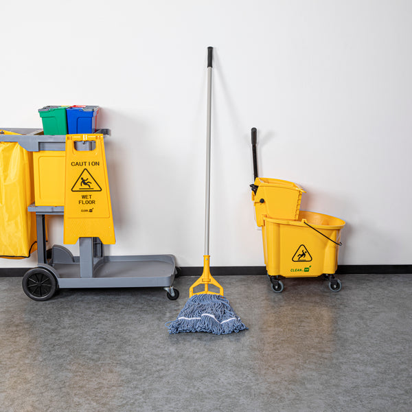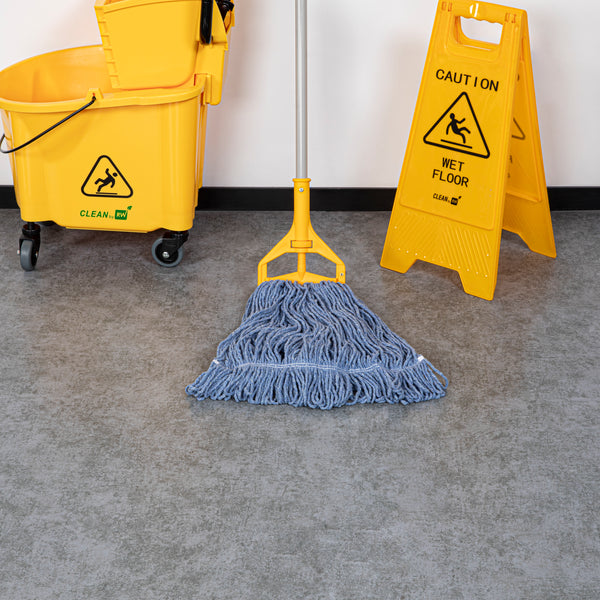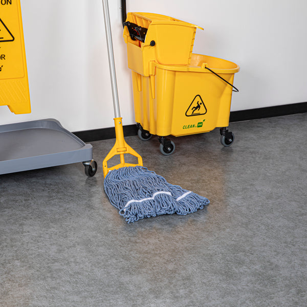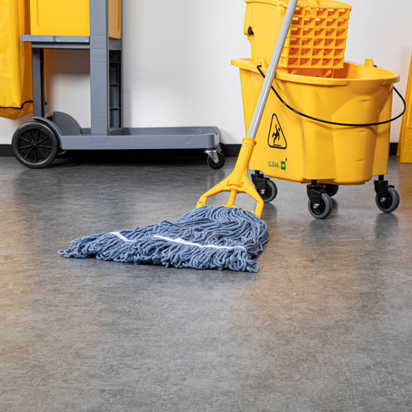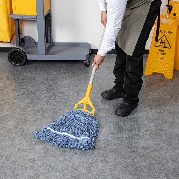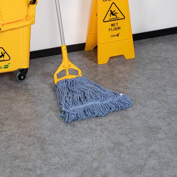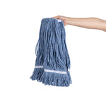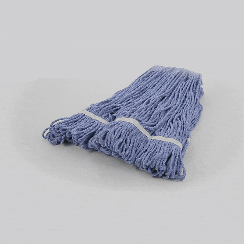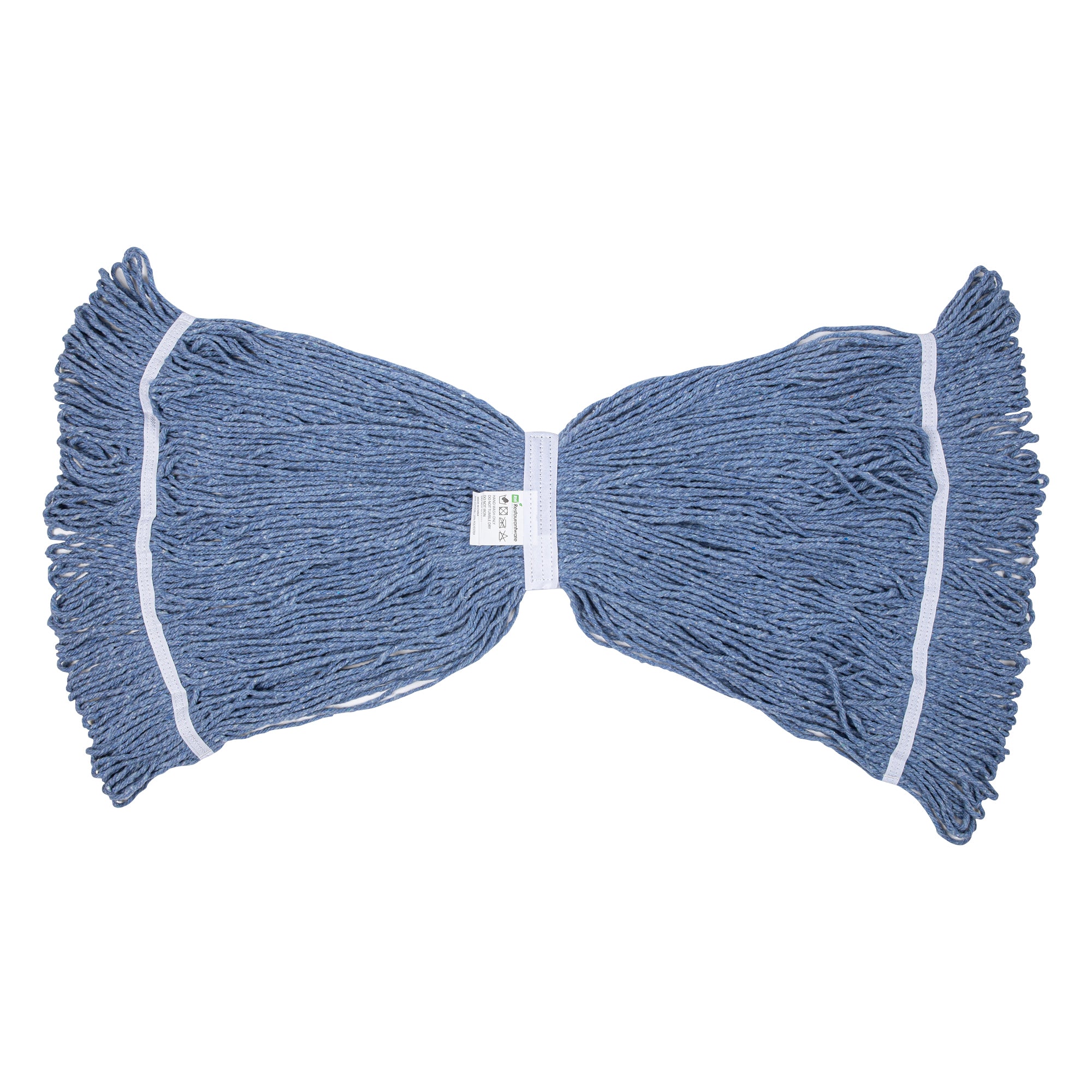 Streamline your cleanup with our RW Clean Poly-Cotton Blend Wet Mop Head. With a loop-end design, this blue mop head is specially designed to prevent the ends from fraying to maintain its premium design and prolong its performance for long-lasting use. This 24-ounce mop refill is ideal for effectively scrubbing floors at your bar, hotel, restaurant, or other foodservice establishment. Crafted from a premium poly-cotton blend, this heavy-duty mop soaks up four times its weight and dries faster to prevent dripping messes. This commercial mop head covers twice the amount of surface area and has a coordinating handle available (SKU: RWT0571GR). Mop handle sold separately. Measuring 18 inches long by 11 inches wide, this blue mop head is ideal for cleaning large messes in your restaurant. Shipped in a 1 count box. To maintain its premium design, we recommend hand washing.