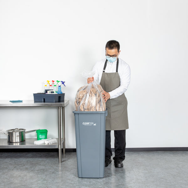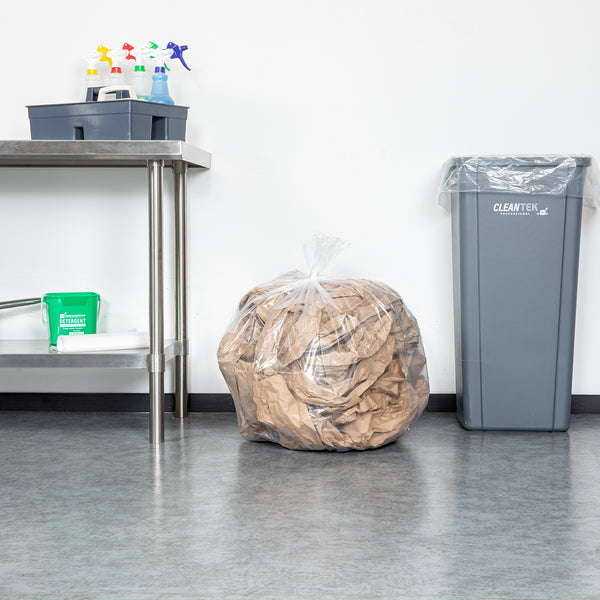 Eliminate messy trash disposal with leak-proof solutions. RW Clean Trash Bags feature a star seal bottom that prevents leaks, making them ideal for carrying wet trash while maintaining cleanliness in your facility. With a spacious 33-gallon capacity, these clear plastic trash bags ensure even weight distribution for effortless removal from bins, saving you time and labor in busy settings. Crafted from durable plastic, these bags offer heavy-duty performance, ensuring reliability for waste management tasks. Equip your kitchen or commercial space with these essential trash bags to enhance cleanliness and efficiency. Each order includes 100 RW Clean Trash Bags.