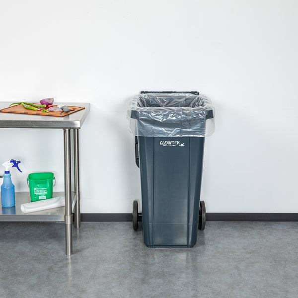 Ensure efficient waste management with virtually leak-proof solutions. RW Clean Leak-Proof 55 Gallon Trash Bags feature a star seal bottom that prevents leaks, making them ideal for wet trash disposal in foodservice environments. These 55 gallon trash bags are crafted from LDPE, providing a 1 mil thickness that delivers durability and reduces the risk of tears and punctures, essential for busy commercial kitchens and event venues. The clear plastic garbage bags offer easy content identification, streamlining sorting and improving operational efficiency. With dimensions of 38 inches in length and 58 inches in width, these bags fit standard 55 to 60-gallon trash cans, accommodating large waste volumes. The star seal trash bags ensure even weight distribution, simplifying bin removal and enhancing convenience. Each order includes 100 RW Clean Leak-Proof 55 Gallon Trash Bags.