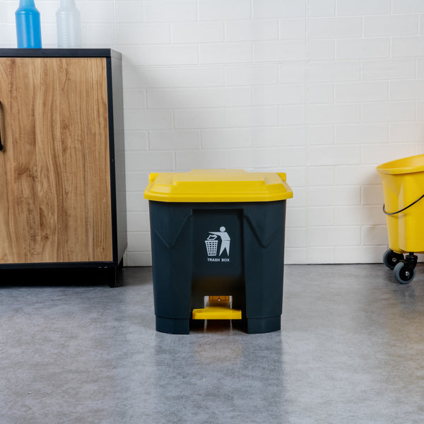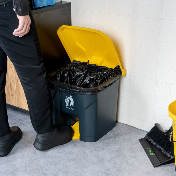 Upgrade your waste management system with our RW Clean 8-Gallon Dark Gray Plastic Step-On Trash Can. With a durable plastic construction, this pedal trash can is designed to withstand heavy-duty use at your foodservice establishment. This step-on trash can is equipped with a non-slip pedal for hands-free operation, providing a touch of convenience to hygiene practices. Boasting a generous 8-gallon capacity, this waste receptacle can handle a large amount of trash, reducing the need for frequent emptying. This waste basket is easy to assemble, requiring minimal time and effort, so you can start using it quickly without any hassle. The internal hinge lid of this foot pedal trash can ensures a tight seal, preventing unwanted odors from escaping and keeping your space fresh. This step garbage can is easy to clean by simply wiping it down, making it a practical choice for high-traffic areas. Measuring 17 inches in length by 15.75 inches in width by 17.25 inches in height, this trash can has a capacity of 8 gallons and seamlessly fits into tight spaces. Sold in a 1 count box.
