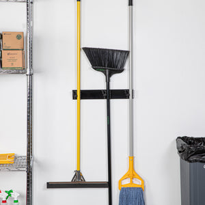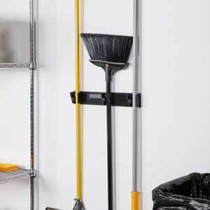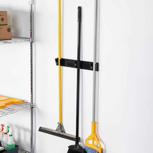 BLACK MOP / BROOM HOLDER - 3 SLOTS, WALL MOUNT