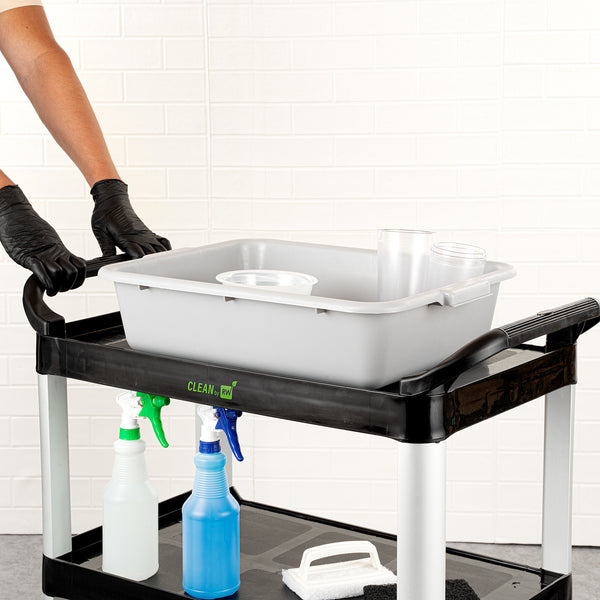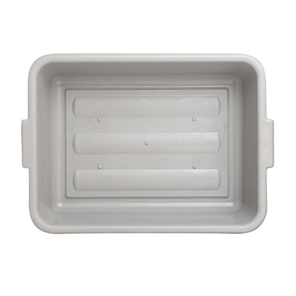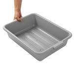 Make your everyday operations effortless in your foodservice establishment with our RW Clean Gray Plastic Bus Tub. With reinforced handles on both sides, this plastic bus box provides an easy grip and can be carried around with ease. With a durable PP plastic construction, this rectangular plastic tub is designed to be long-lasting and is less likely to break or crack. Convenient to clean after use, this plastic bus tub can be washed in the dishwasher at low temperatures. To keep your large batches of dishes marinated, this bus utility box is freezer-safe. When not in use, this plastic food storage container is stackable with our other bus tubs, saving space in the kitchen. With a gray finish, this restaurant bus box helps your staff easily organize and differentiate items. This pantry storage container measures 20 inches in length by 15 inches in width by 5 inches in height. The inside of this bus tub measures 18.5 inches long by 14.6 inches wide. Sold in a 1 count box.