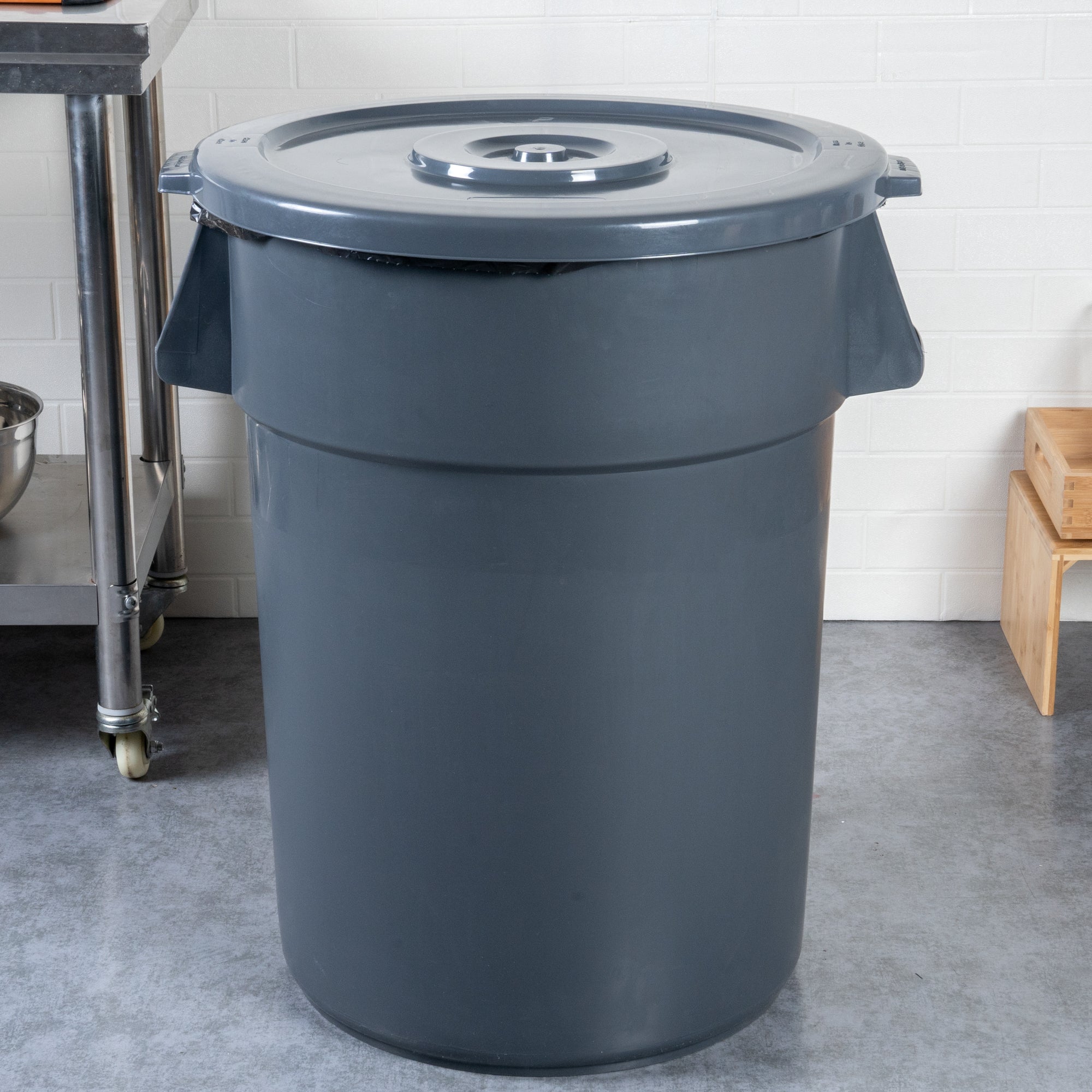 GRAY PLASTIC COMMERCIAL TRASH CAN / INGREDIENT BIN LID - FITS 44 GAL