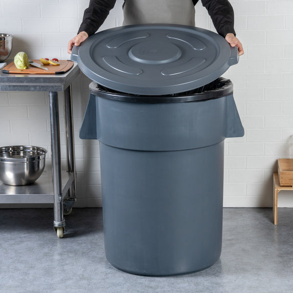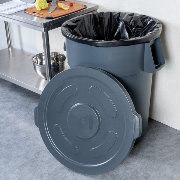 GRAY PLASTIC COMMERCIAL TRASH CAN / INGREDIENT BIN LID - FITS 55 GAL