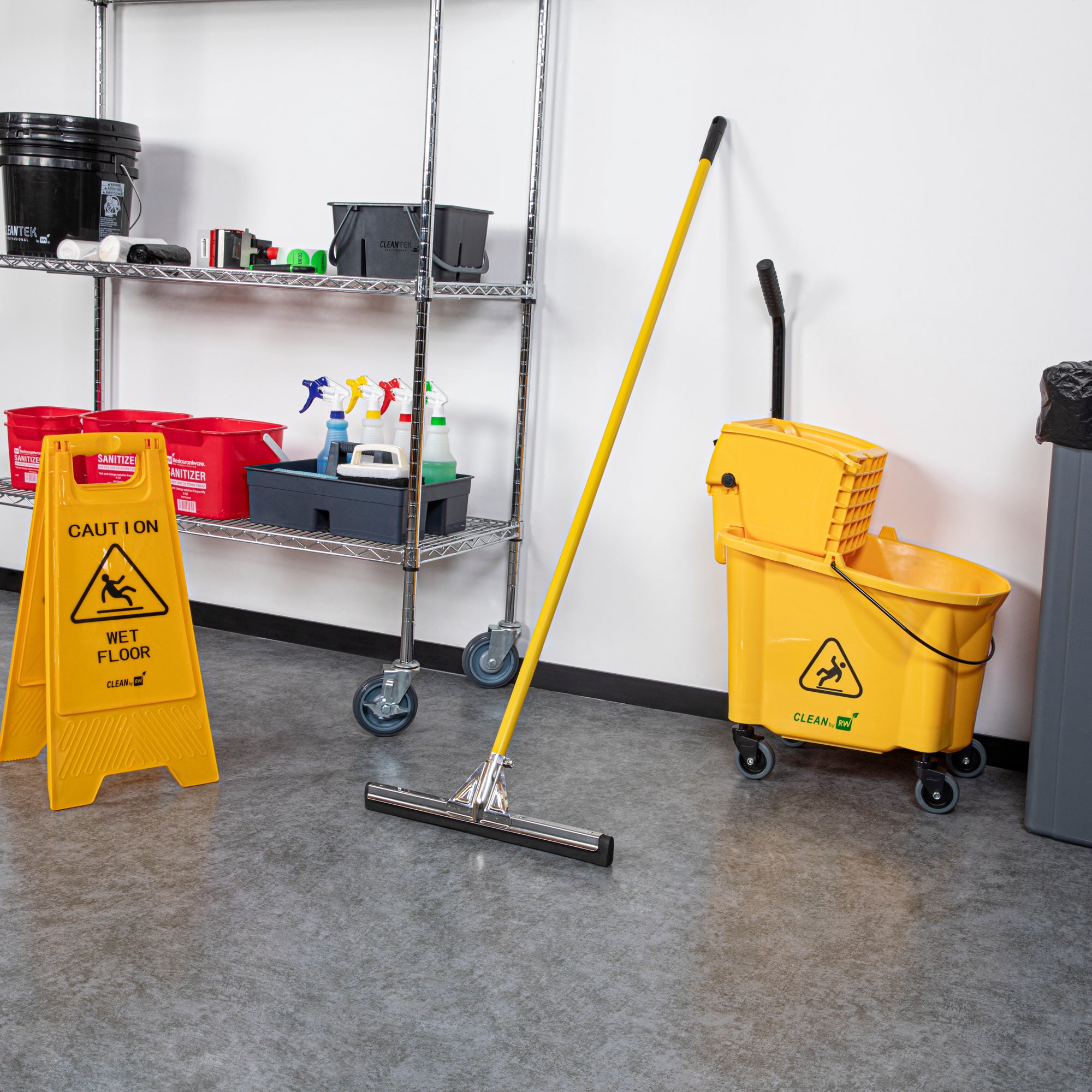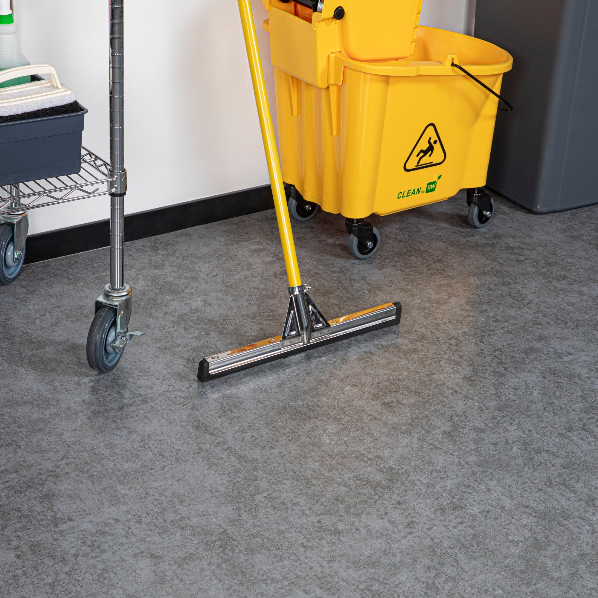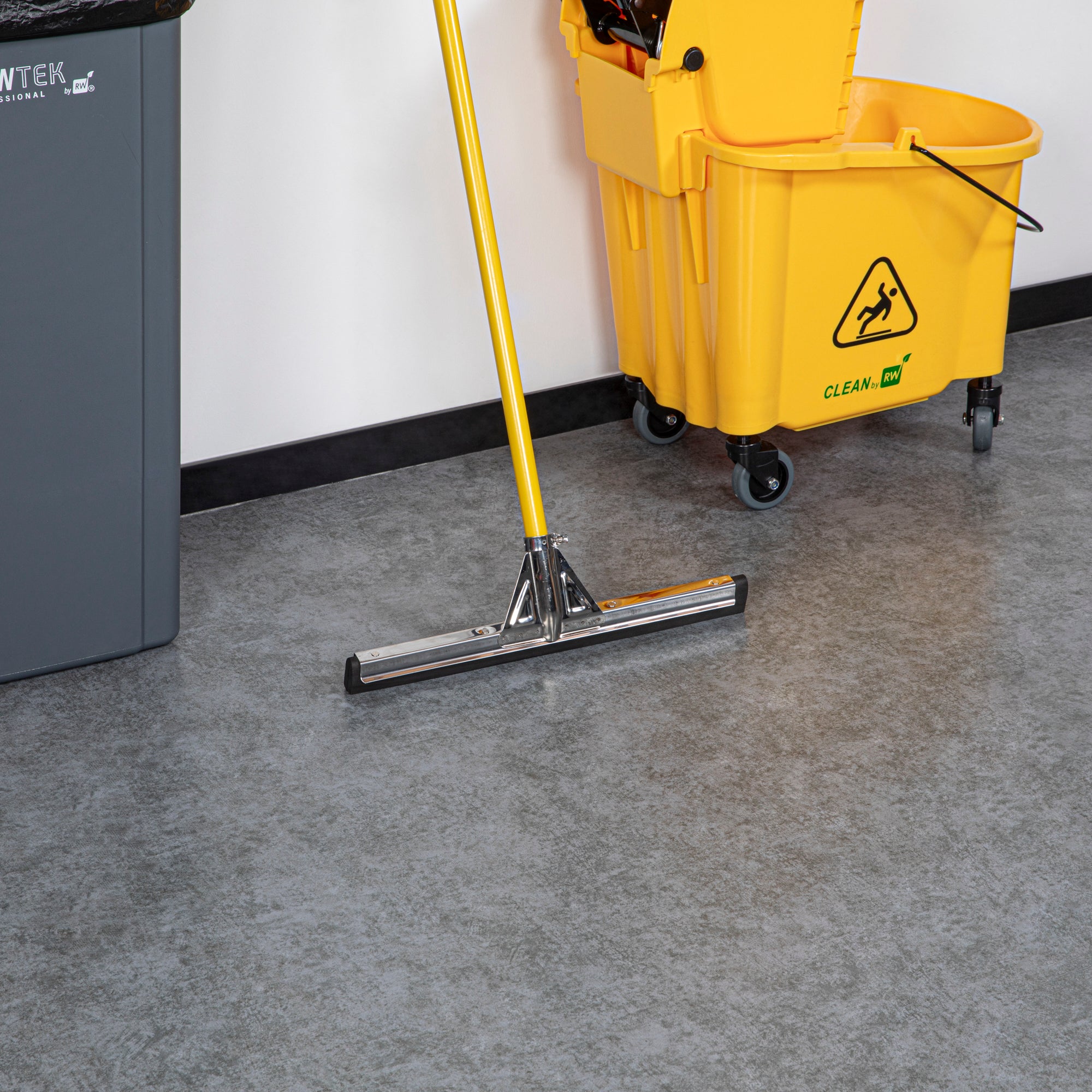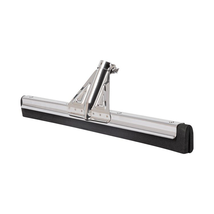 Keep your floor clean with our RW Clean Stainless Steel Floor Squeegee. Featuring a 5-inch thick double foam blade, this water-resistant floor squeegee effectively scrubs away water and debris to leave a streak-free and spotless shine on your pristine floors. This foam floor squeegee is suitable for all types of floors and easily gets in between the grouting in tile and concrete floors. Built with a stainless steel frame, this heavy-duty floor squeegee is equipped with a splash guard to prevent water from spilling over the frame and allows you to apply ample amounts of pressure to successfully scrub away water, mud, and other debris. This commercial foam squeegee features an adjustable handle socket to easily tighten the foam head to perfectly fit your handle. Coordinate this floor squeegee with its accompanying handle (SKU: RWT0575Y) to streamline your cleanup. Handle sold separately. This rubber floor squeegee measures 17.75 inches long and is sold in a 1 count box.