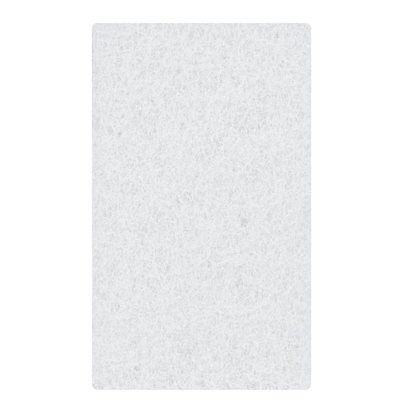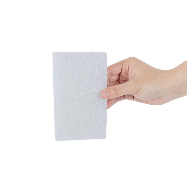 Easily accomplish any cleaning tasks with our RW Clean White Scouring Pads. Made with high-quality nylon fibers, these non-abrasive scouring pads make it simple to buff surfaces and remove any dirt, scuffs, or unsightly grime. These multi-purpose scour sponges are versatile and can be used for dishes, ceramics, porcelain, sinks, tiles, or other delicate surfaces. The rectangular shape of these scrubber pads easily fits into corners and hard-to-reach places. These scrubbing sponges are lightweight and have premium nylon fibers that resist snagging and tearing on any raised surface. Each white scrubbing pad measures 6 inches in length by 3.5 inches in width by 1 inch in height. Sold in a 10 count box.