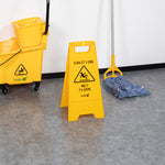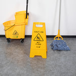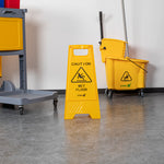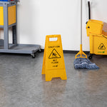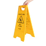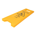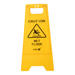 YELLOW PLASTIC CAUTION WET FLOOR SIGN - DOUBLE-SIDED