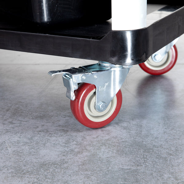- Built-in brakes allow you to lock equipment firmly in place during peak hours, avoiding accidents