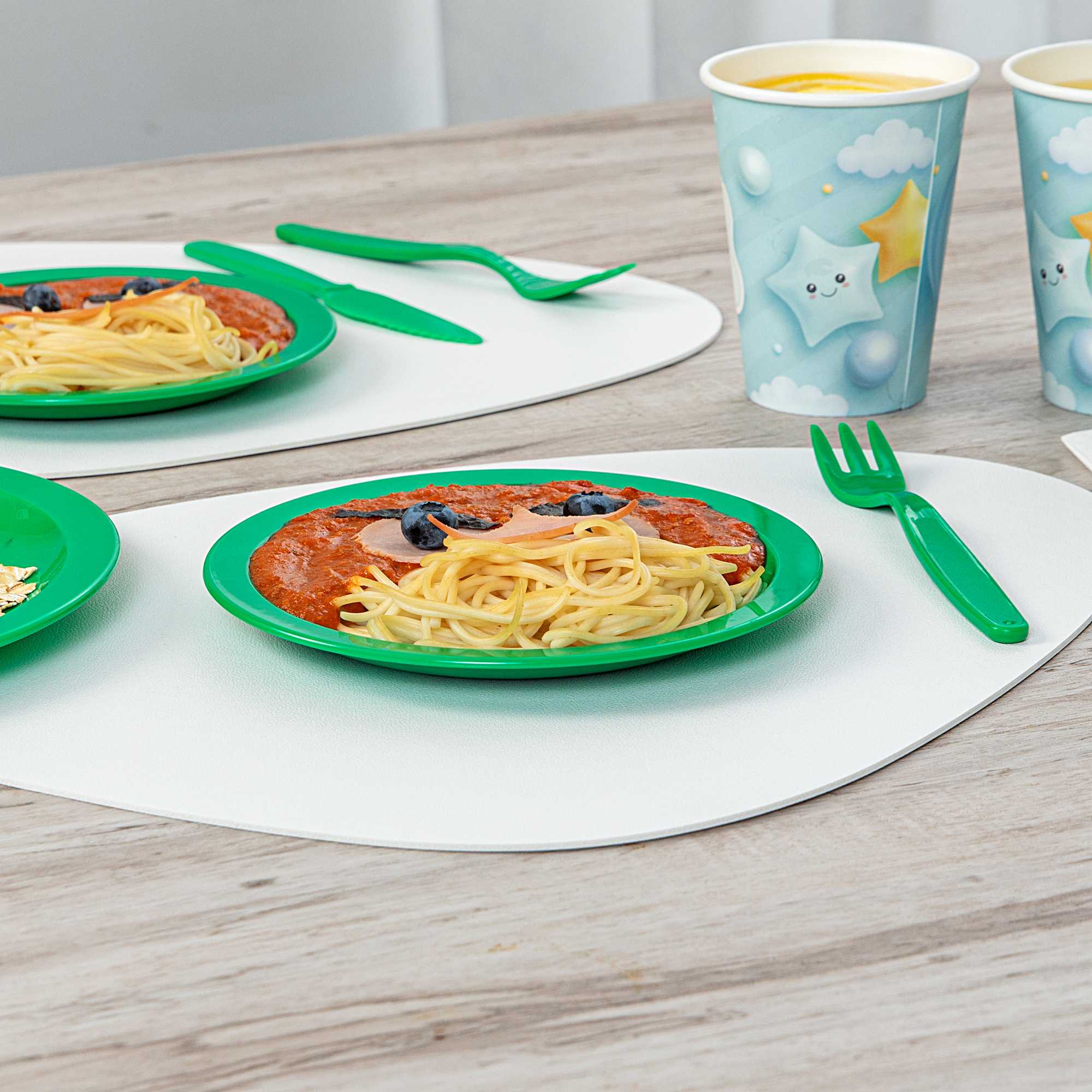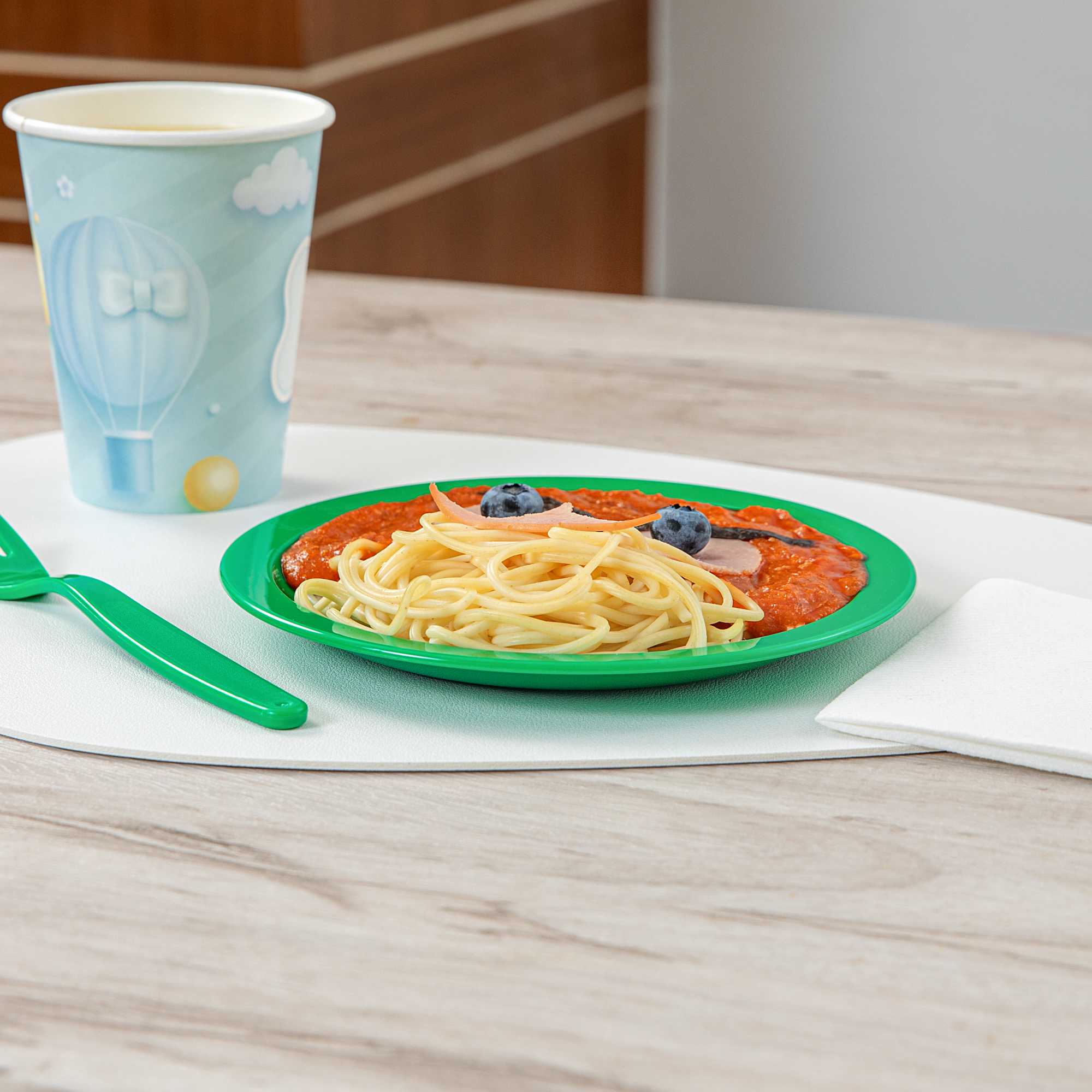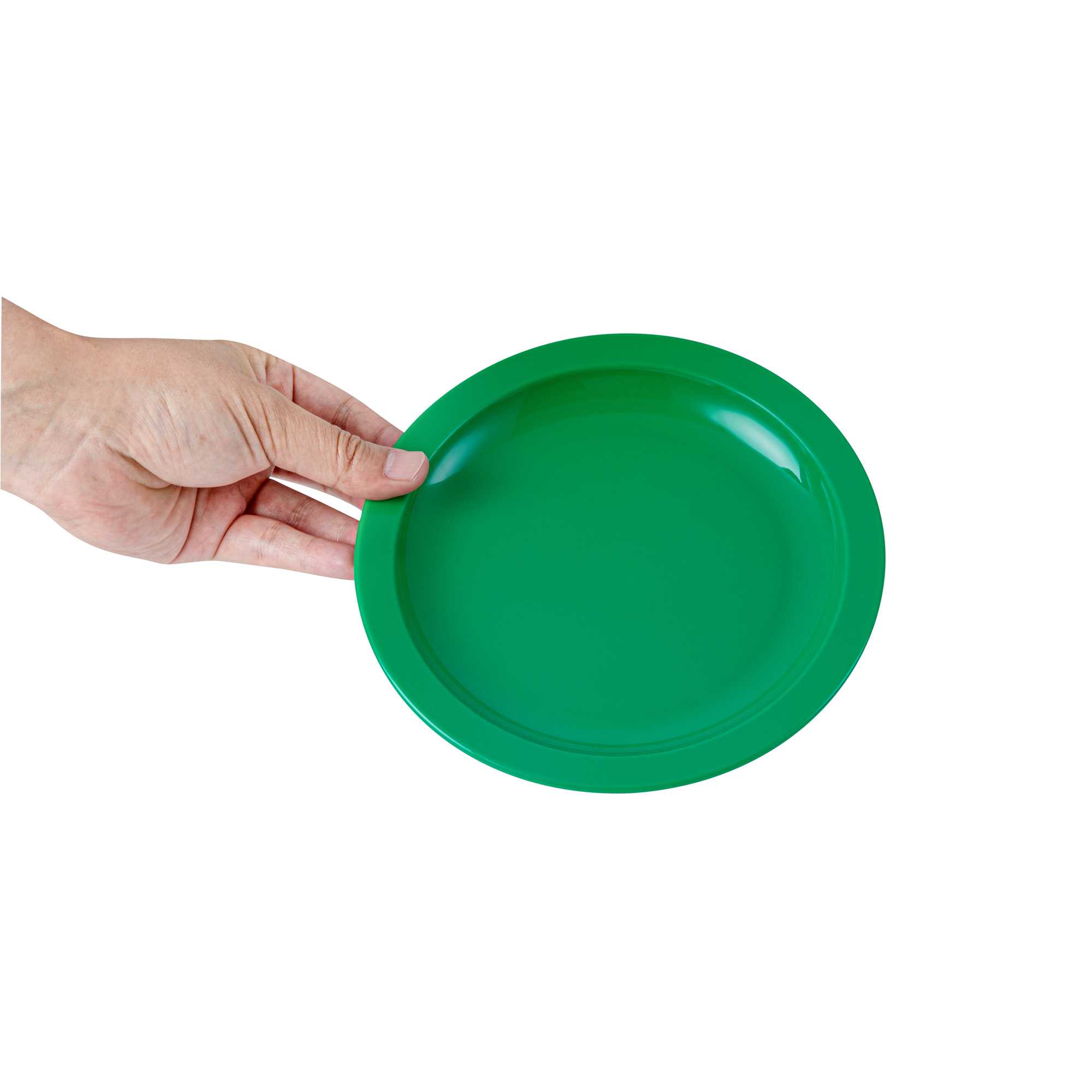 Ensure the safety of little diners with shatterproof plates. The RW Kids Green Plastic Plate is designed for durability, making it ideal for schools where safety is paramount. Its shatterproof design minimizes breakage, providing peace of mind for educational environments, making it the perfect break-resistant plate. These microwave-safe plates withstand temperatures from -40 to 100 degrees Celsius, enabling quick reheating of meals for optimal foodservice flexibility. With a stackable design, these plates conserve valuable storage space, ensuring an organized kitchen. Measuring 6.77 inches in length and width, these plates are perfectly sized for side dishes or child-sized portions, enhancing their versatility as a foodservice essential. Crafted from robust plastic, these plates offer durability and convenience, supporting efficient operations in busy settings. Equip your establishment with these versatile, green plastic plates to streamline your service. Sold in a 10 count box.