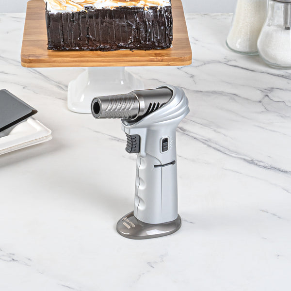 SILVER BUTANE KITCHEN TORCH - ADJUSTABLE DIAL, ROTATING ANGLE