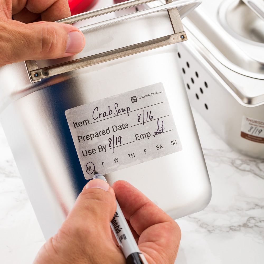 Ensure spotless container surfaces with dissolvable food labels. RW Smart Dissolvable Food Labels feature a dissolvable design that leaves containers residue-free for quick cleanup, making them ideal for busy commercial kitchens. The customizable elements of these labels simplify the organization of stored food items, aiding in efficient inventory management. Their expiration date section is designed to aid in tracking and preventing spoilage, crucial for operations needing reliable expiration tracking labels. Constructed from white paper, these labels offer a clear writable surface, and their 3 inches by 2 inches dimensions provide ample space without overwhelming your containers. Perfect for cold and hot storage, these labels are also freezer-safe labels, ensuring performance across various conditions. Each order includes 500 RW Smart Dissolvable Food Labels.