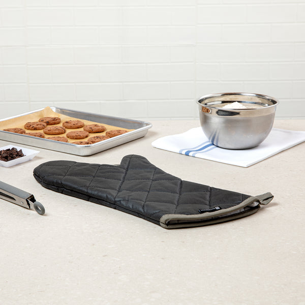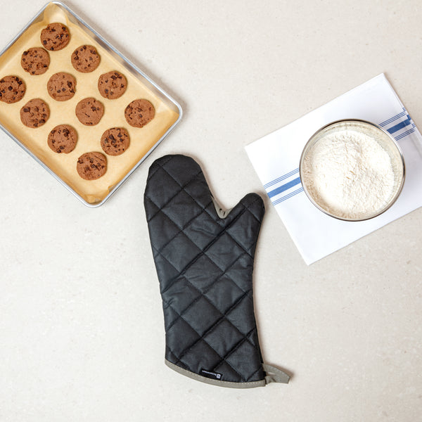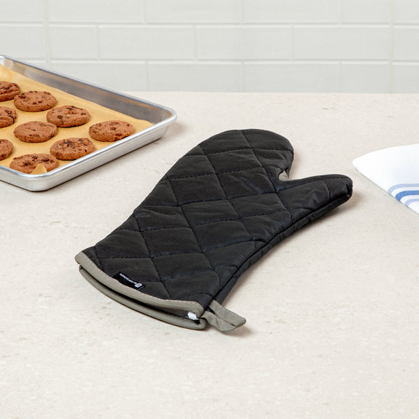 BLACK COTTON OVEN MITT - FLAME RETARDANT, WITH THUMB GUARD