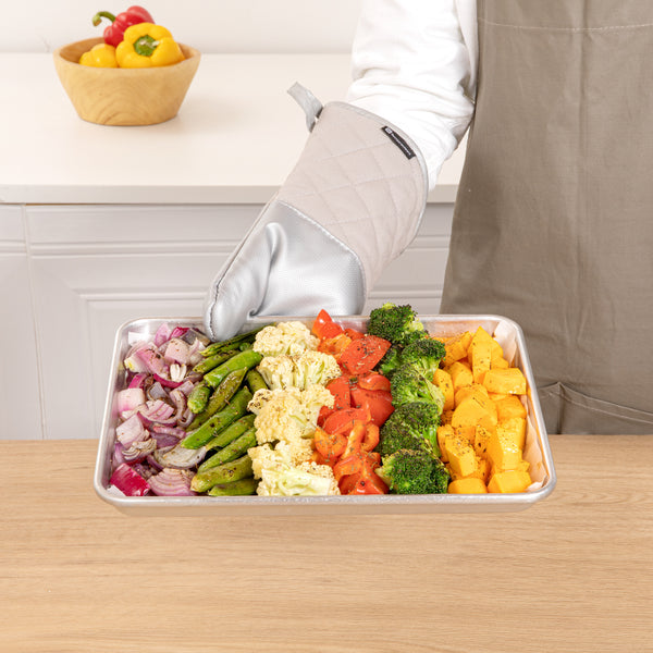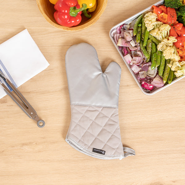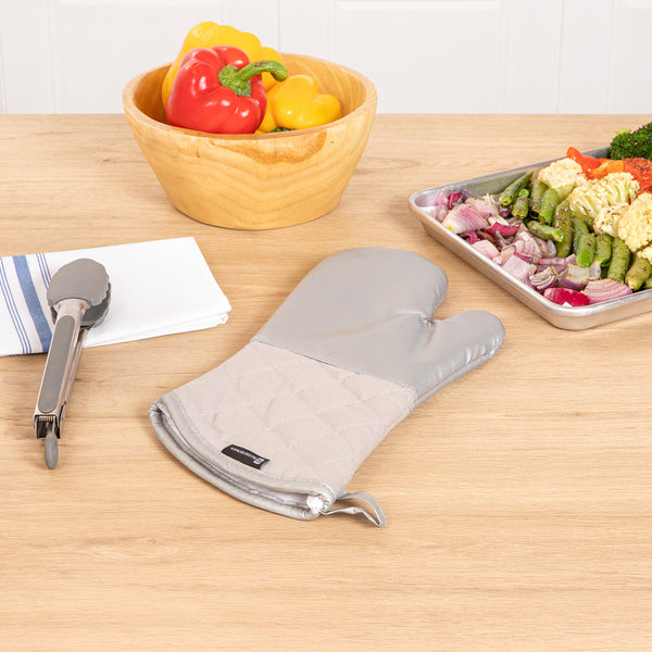 SILVER FIBERGLASS OVEN MITT - NON - SLIP, PROFESSIONAL GRADE