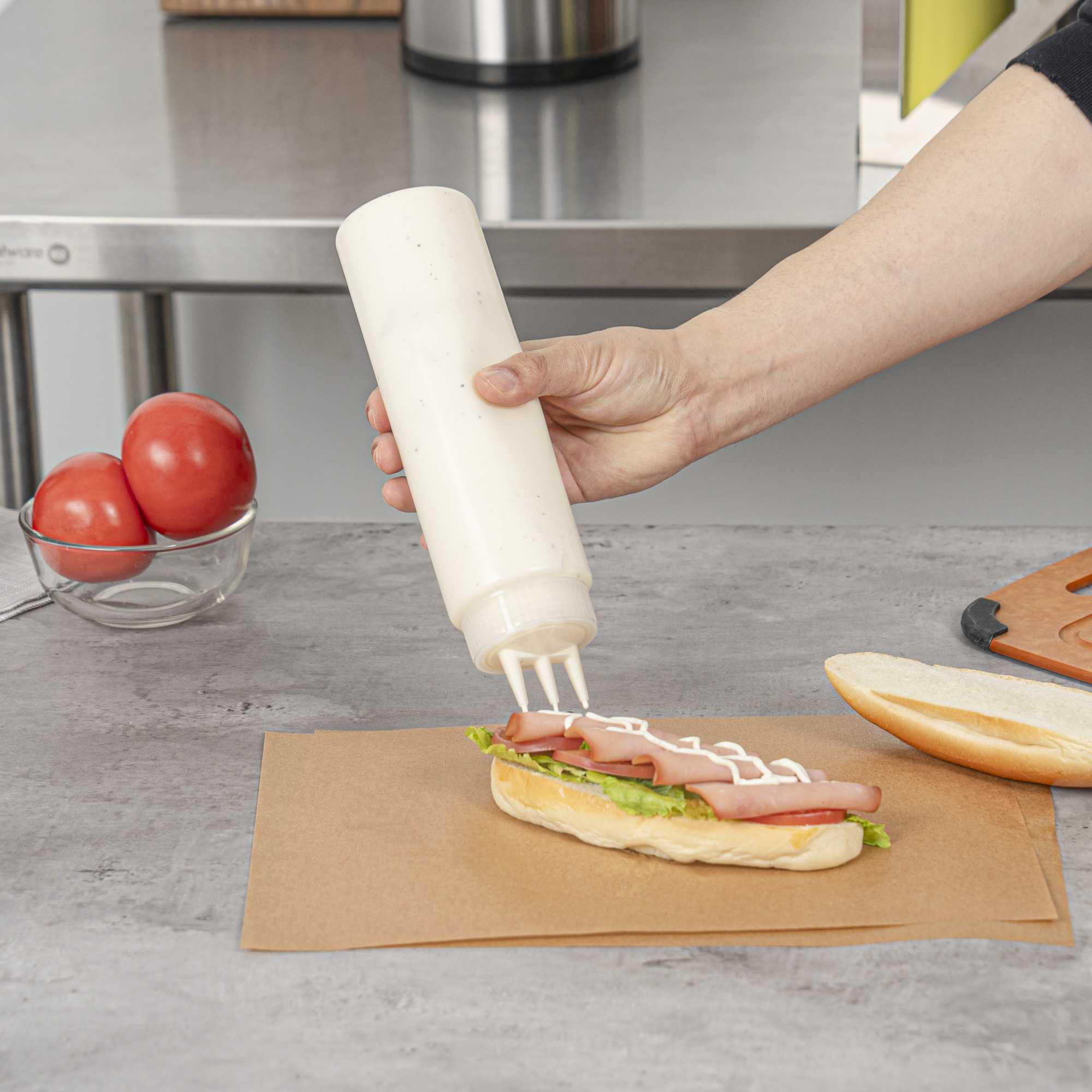 - 3-tip design enables quick and even dispersion of oils on grills or sauces on sandwiches
