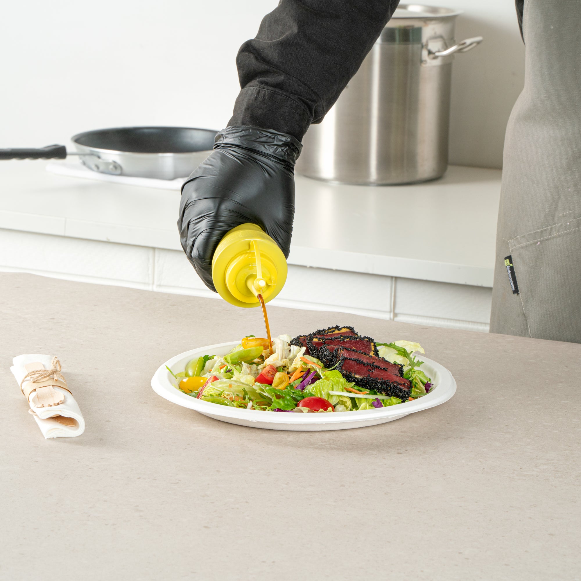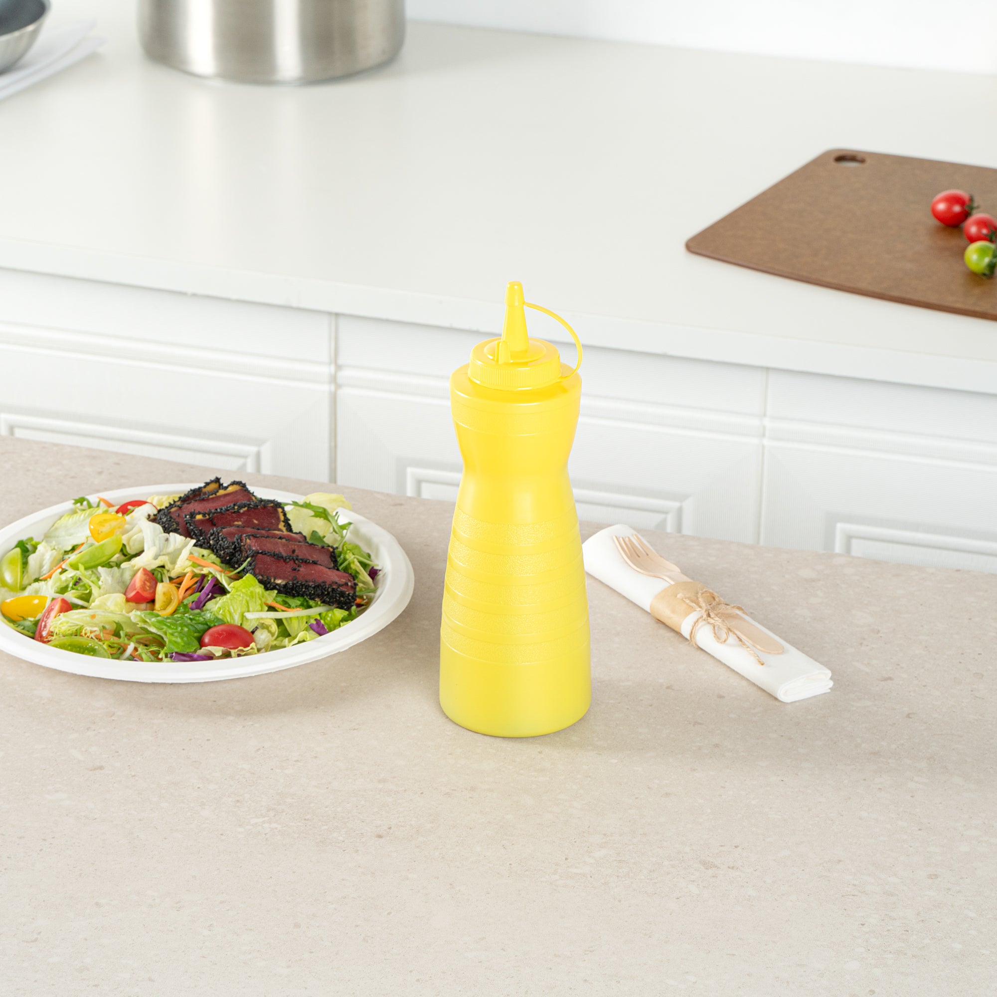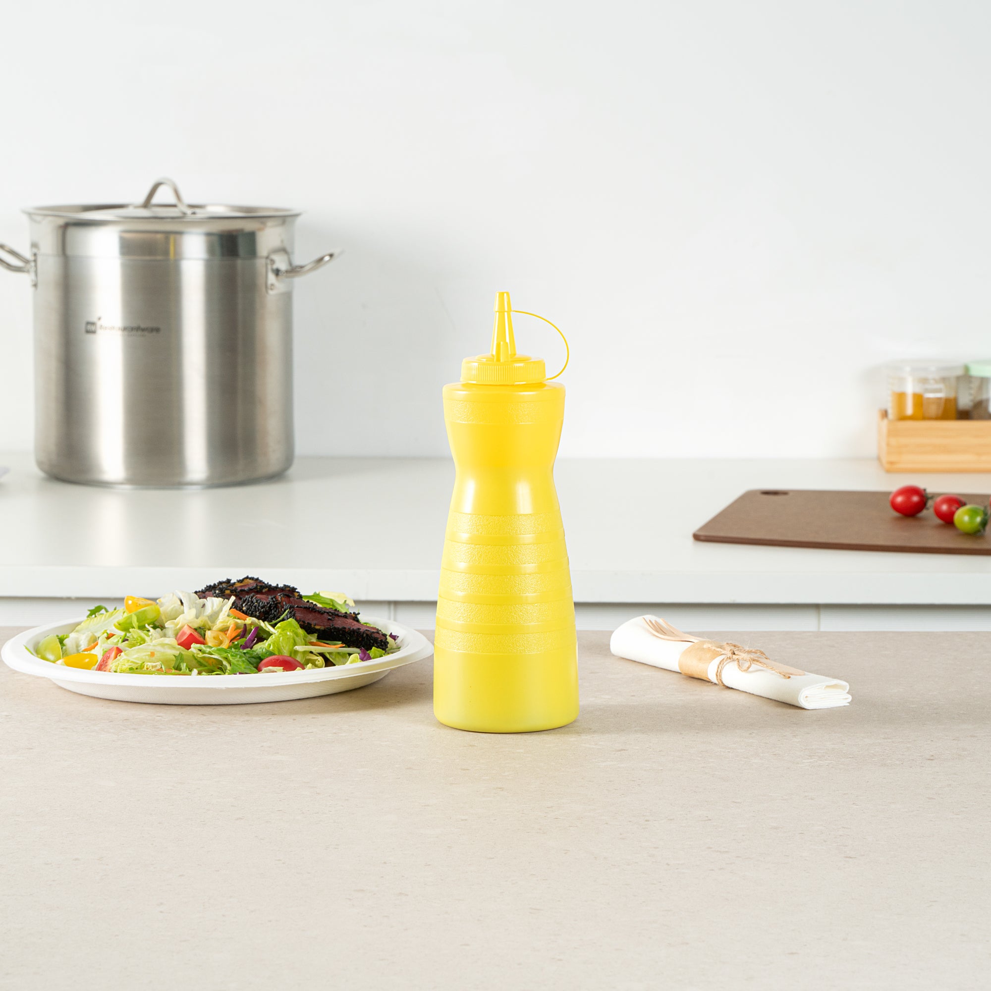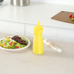 Elevate your condiment storage solutions with our Sauce Tek 24-ounce Yellow Plastic Squeeze Bottle, designed to effortlessly dispense sauces with precision. Made from food-safe plastic, this squeeze dispenser ensures the safe storage of your favorite condiments. Featuring an included cap, this squeeze bottle prevents leaks and keeps contents fresh for longer. The wide mouth squeeze bottle design facilitates easy refilling and cleaning, making it a practical choice for busy kitchens. With its vibrant yellow finish, this refillable squeeze bottle is easily identified as a mustard bottle among other condiments. Holding a generous capacity of 24 ounces, this sauce bottle measures 2.76 inches in diameter by 10.24 inches in height, making it an ideal fit for your culinary needs. Sold in a 1 count box.