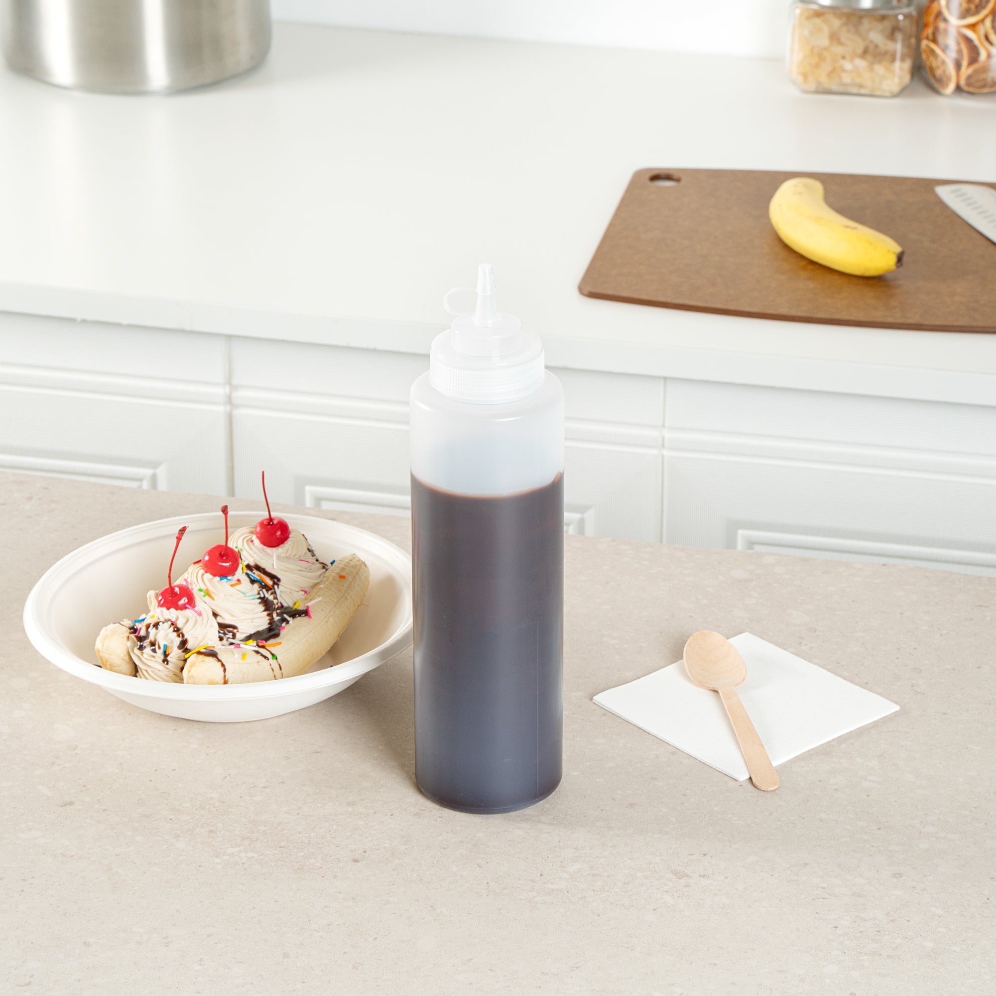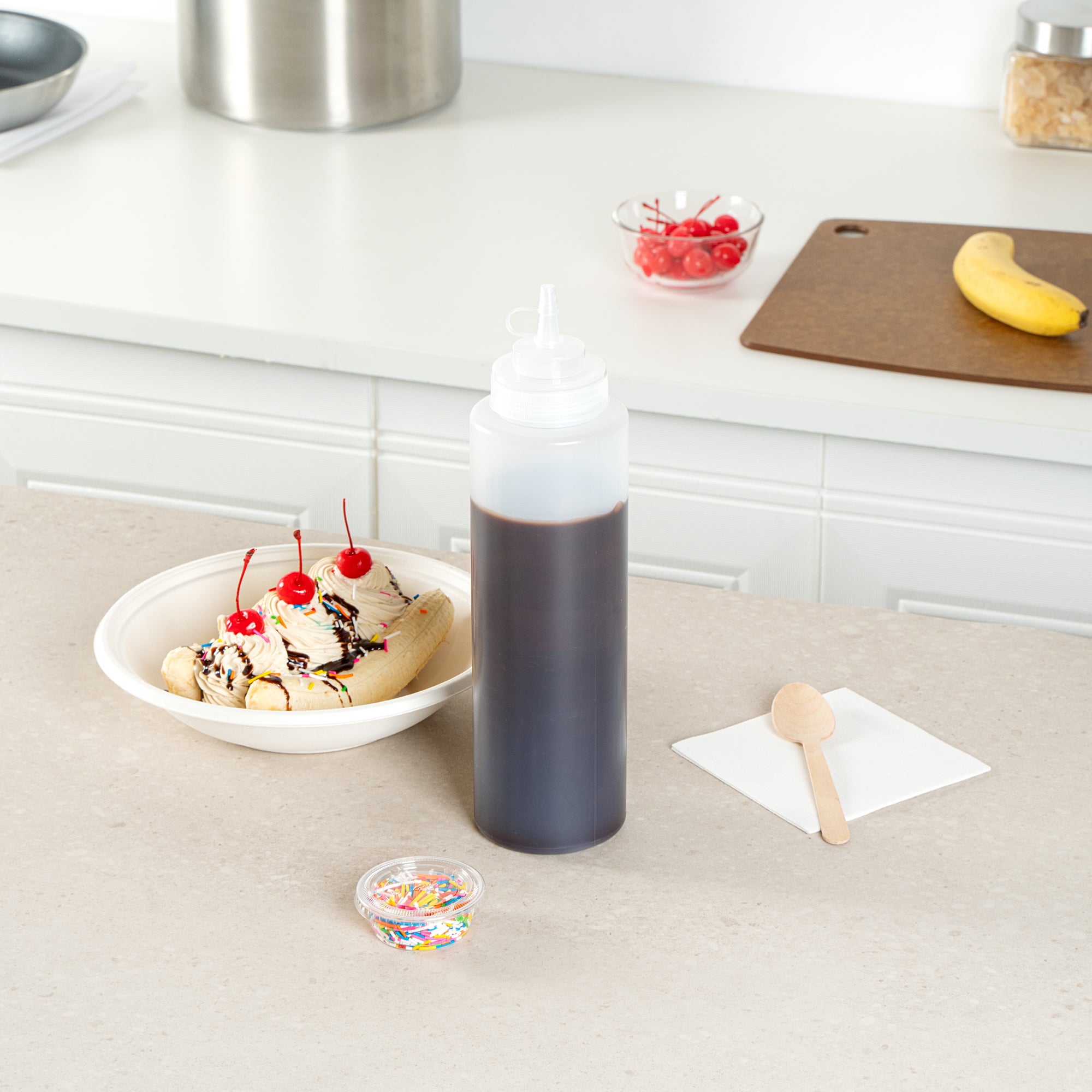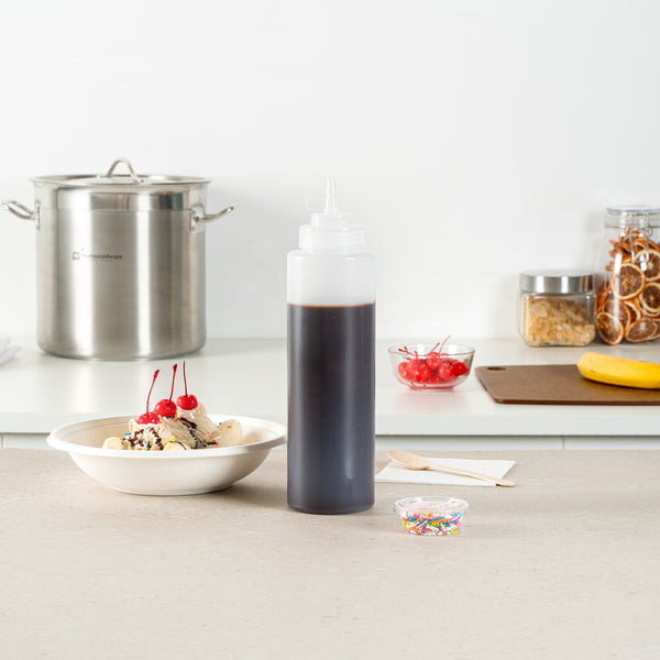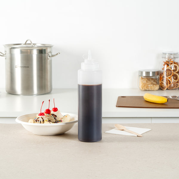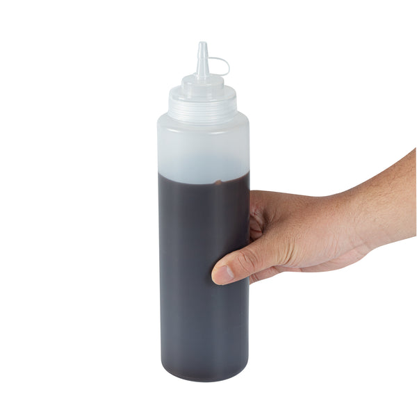 Store and dispense sauces efficiently with our Sauce Tek 32-ounce Clear Plastic Squeeze Bottle. Made from food-safe plastic, this squeeze dispenser ensures your condiments are stored safely. The included cap on this condiment dispenser prevents leaks and keeps contents fresh. Featuring a wide mouth design, this refillable squeeze bottle facilitates easy refilling and cleaning after use. The clear finish of this wide mouth squeeze bottle showcases the vibrant colors of the condiments inside. With a generous 32-ounce capacity, this sauce bottle measures 3.07 inches in diameter by 11.42 inches in height. Sold in a 1 count box.