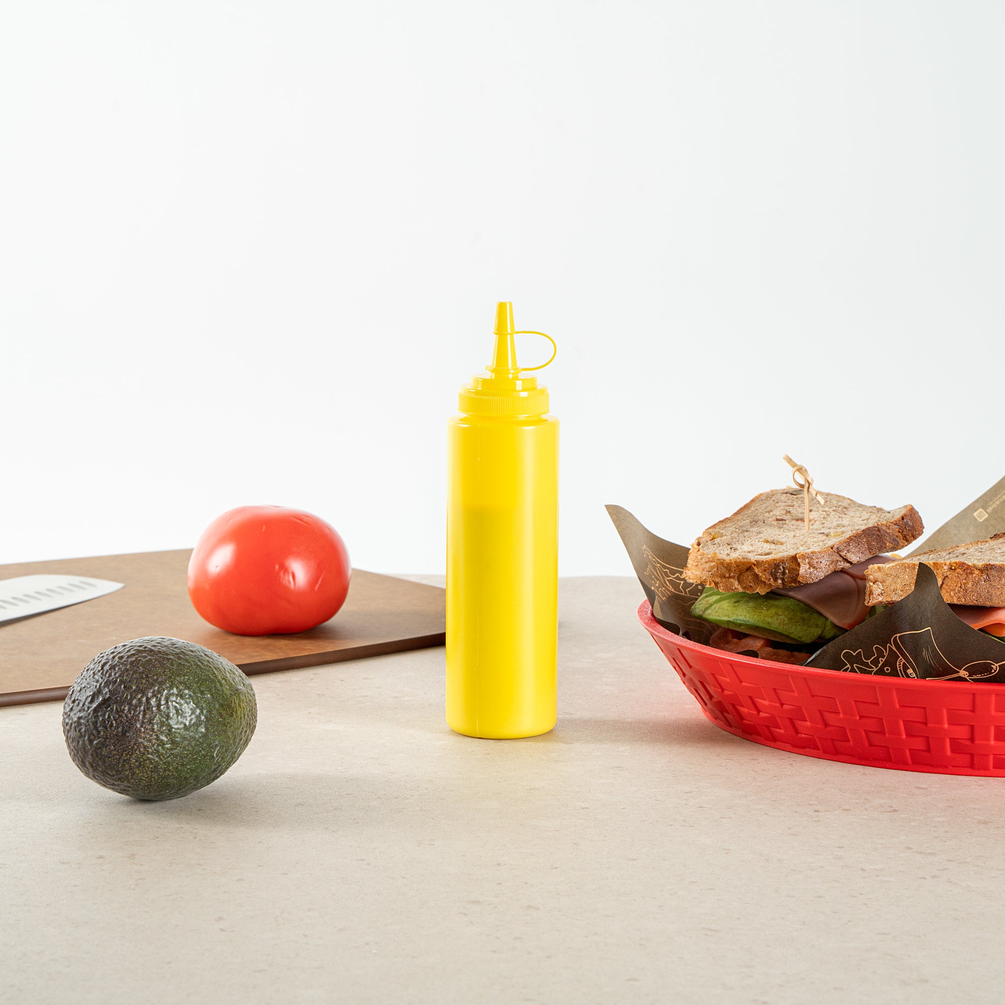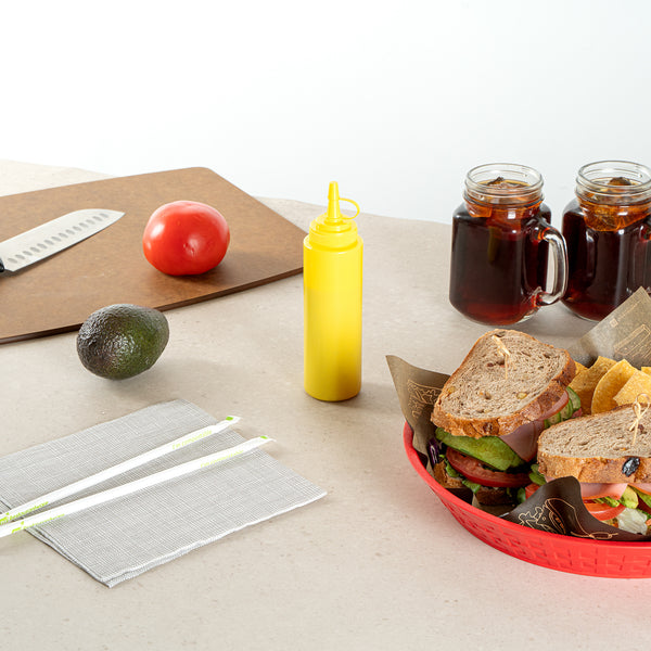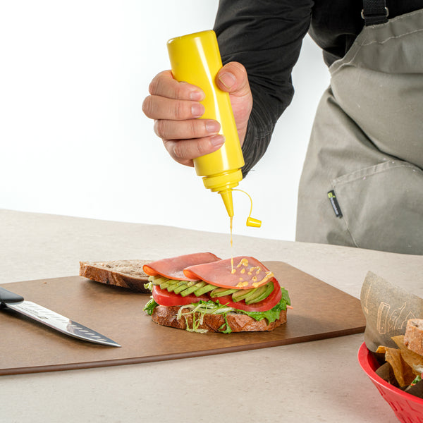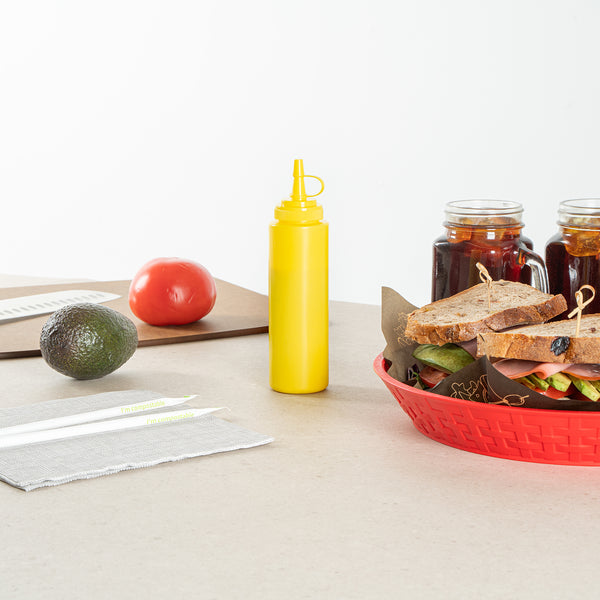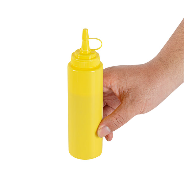 Enhance your foodservice operations with our Sauce Tek 8-ounce Yellow Plastic Squeeze Bottle, the perfect solution for efficiently storing and dispensing condiments. This squeeze dispenser is crafted from food-safe plastic, ensuring that your sauces and condiments are kept secure and fresh. With a reliable cap, this condiment dispenser prevents leaks and maintains the freshness of your ingredients. Designed as a wide mouth squeeze bottle, this container allows for easy refilling and cleaning, streamlining your kitchen processes. The bright yellow finish of this refillable squeeze bottle makes it easily identifiable as a mustard bottle amidst other condiments, adding convenience to your organization. This sauce bottle boasts a generous capacity of 8 ounces, measuring 1.97 inches in diameter by 7.28 inches in height, making it a compact yet efficient choice for any space. Sold in a 1 count box.