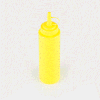 8 OZ YELLOW PLASTIC SQUEEZE BOTTLE - WITH CAP, WIDE MOUTH