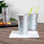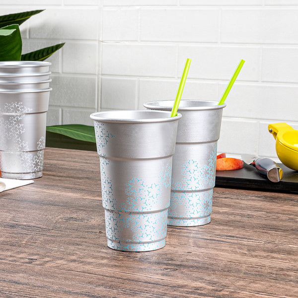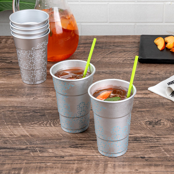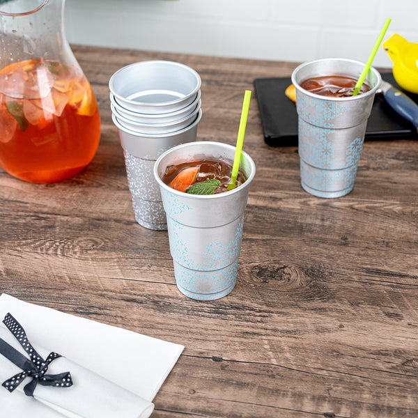 Enhance your beverage service with a visually striking twist. Saving Nature Color-Changing Aluminum Cups transform any drink presentation with their captivating color-changing feature, creating an eye-catching visual effect that delights guests. Crafted from robust aluminum, these 3.5-inch by 5.5-inch metal cups are designed to keep your drinks refreshingly cool, making them perfect for serving chilled cocktails or sodas. Their cold food-friendly design ensures that beverages maintain their optimal freshness, while the freezer-safe capability allows for convenient make-ahead drink prep, ideal for busy service environments. The reusable cups are also recyclable, supporting sustainable practices in your establishment. Elevate your drinkware collection with these innovative and stylish solutions, perfect for any occasion. Each order includes 4 Saving Nature Color-Changing Aluminum Cups.