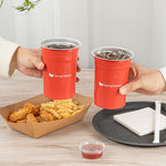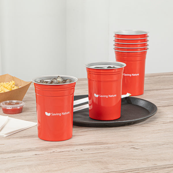 Serve drinks sustainably with stylish red aluminum tumblers. The Saving Nature Recyclable Aluminum Tumbler, with dimensions of 3.9 inches by 3.9 inches by 5 inches, is crafted from 100% recyclable aluminum, offering a lightweight, durable alternative to single-use plastics. Dishwasher-safe, these tumblers ensure a spotless and gleaming finish, making them the perfect anodized aluminum cup for busy foodservice establishments. The easy-stack feature simplifies transport and storage, saving valuable back-of-house space. Ideal for versatile beverage serving, these tumblers are cold and hot food friendly, ensuring seamless service of drinks from iced coffees to hot teas. Use these cold drink cups to enhance your beverage presentation while supporting eco-friendly practices. Each order includes 10 Saving Nature Recyclable Aluminum Tumblers.