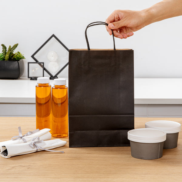 Streamline your store's efficiency with stylish convenience. The Saving Nature Paper Shopping Bags feature built-in handles that enable customers to easily carry their purchases, making these black shopping bags with handles an ideal choice for any retail setting. Constructed from sturdy paper, they support multiple or hefty meals, perfect for catering services looking to optimize their packaging solutions. The stand-open design simplifies fast packing for quick service, allowing employees to manage orders efficiently and enhancing customer satisfaction with these black paper takeaway bags. Measuring 7.87 inches in length, 3.93 inches in width, and 11.4 inches in height, these black gift bags with handles are spacious enough to accommodate a range of products, from clothing to packaged goods. Emphasize your commitment to sustainability; these recyclable bags are crafted from eco-friendly materials, aligning with modern environmental initiatives. Elevate your brand's image by incorporating these versatile and reliable bags into your operations. Each order includes 100 Saving Nature Paper Shopping Bags.