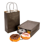 The rectangular base of these paper bags with handles provides a flat surface that evenly distributes weight to reliably hold heavy items without tearing. Open-top design for easy access!