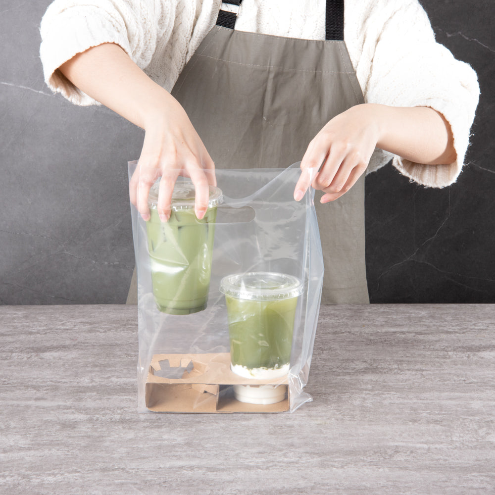 CLEAR PLASTIC TAKE OUT BAG - FITS 2-CUP DRINK CARRIER