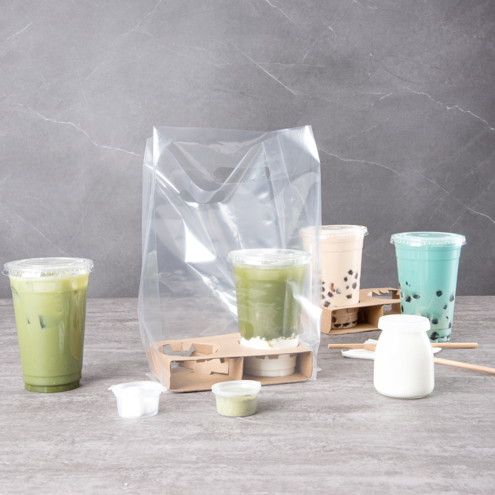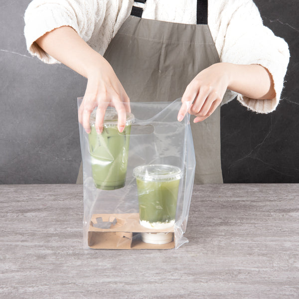 No need to balance all your drinks in one hand! Pair these clear carry out bags with our compatible drink carriers to conveniently take multiple beverages on the go.!