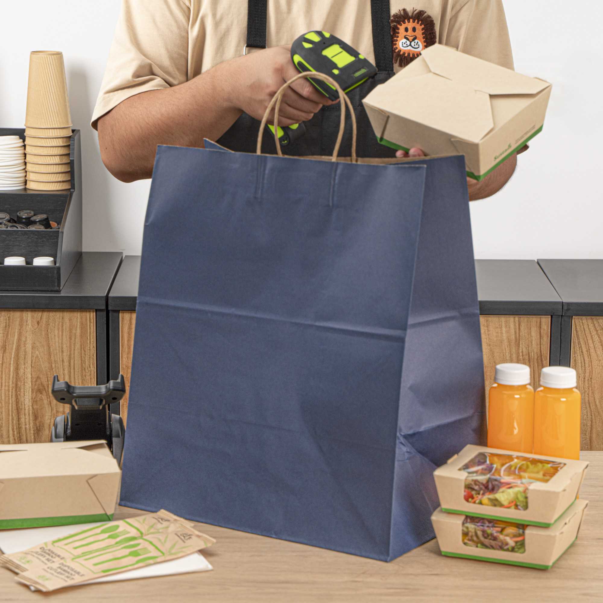 DARK BLUE PAPER LARGE RETAIL BAG - WITH HANDLES