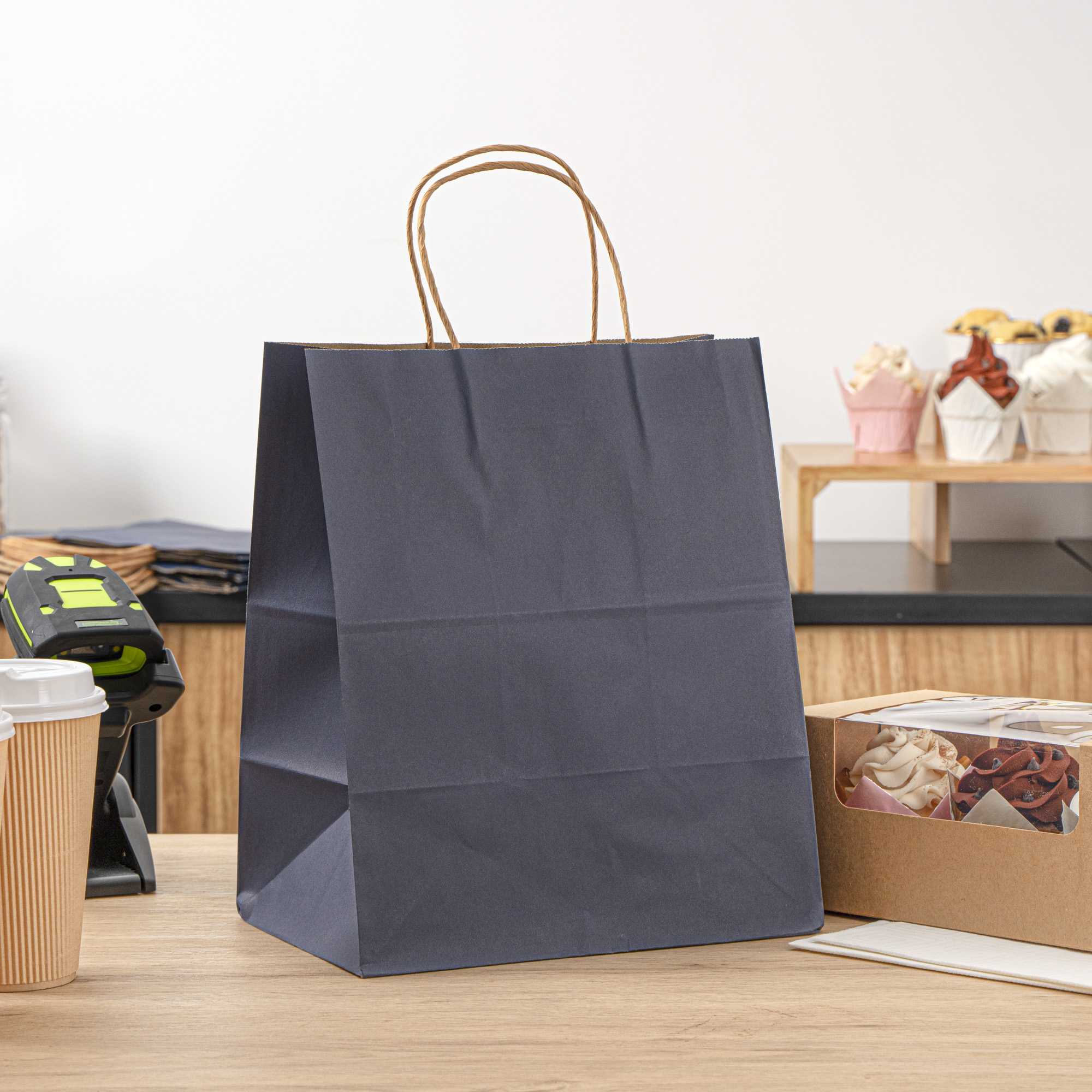 The flat-fold design of these paper shopping bags allows you to easily store them and expand when ready for use. Efficient in every aspect!