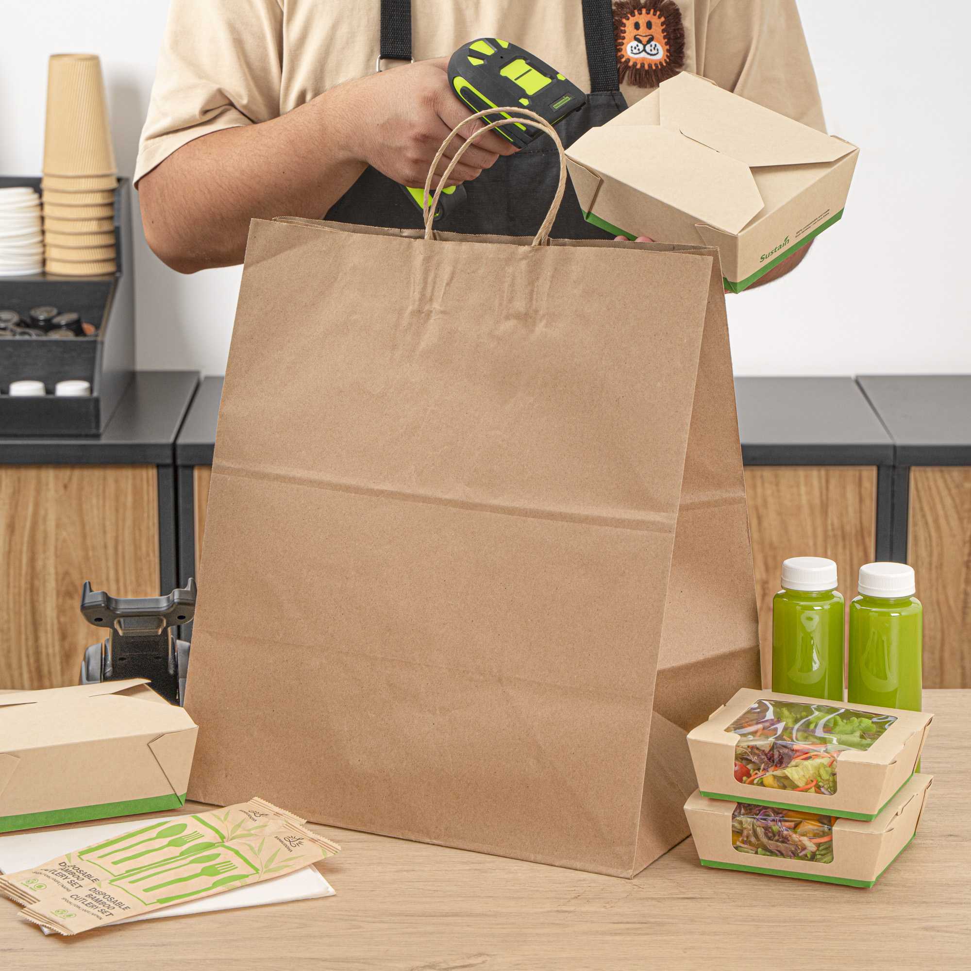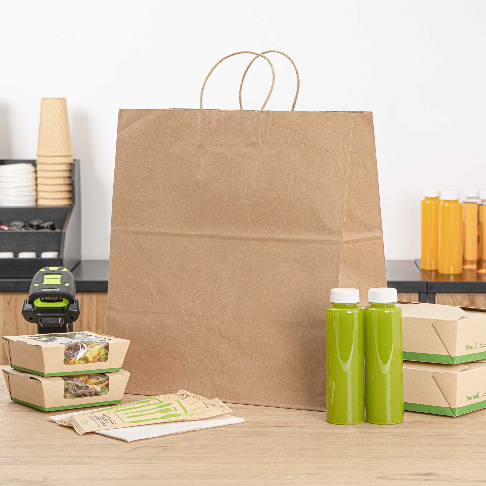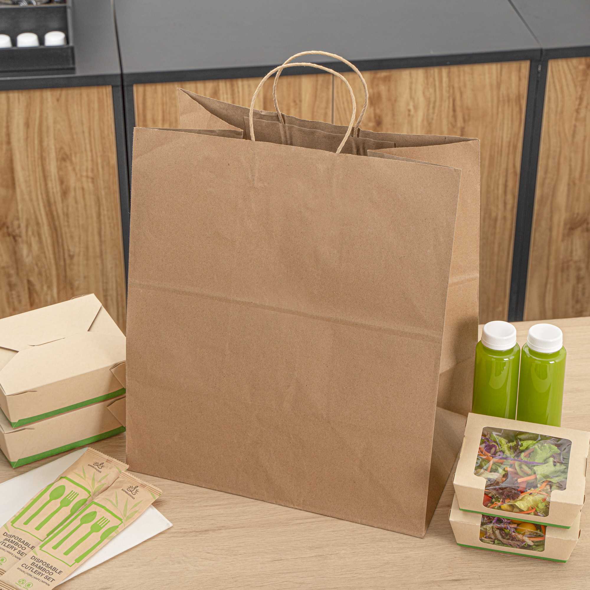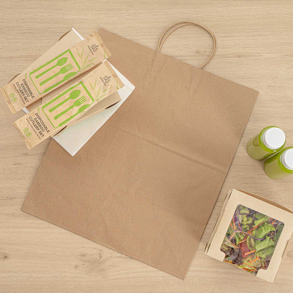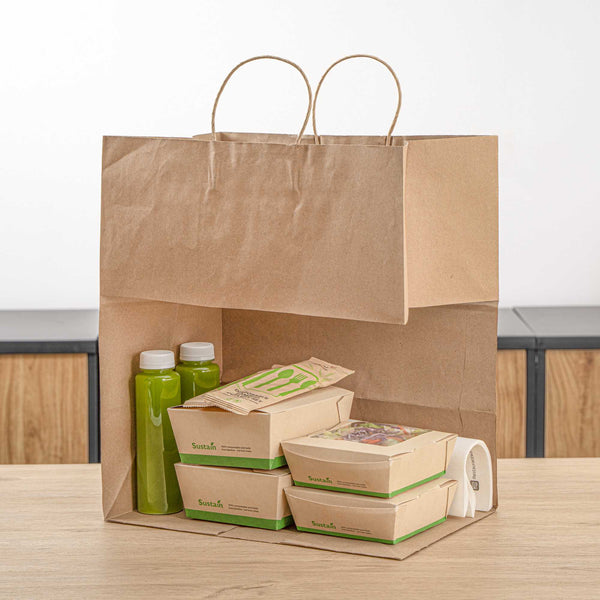 Made from paper, these paper bags reduce your carbon footprint and are a great substitute to traditional shopping bags. Make the right choice!